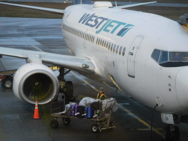 Getting those two seats at the back of the plane was not a blessing. The washrooms are back there, and consequently each one of the 150 or so passengers got to stand beside us waiting to go in. Some, lots more than once. That way we felt positioned to find out (soon enough) if any single one of them was ill. And one lady really looked very ill. The plane itself was small and outdated , a 737-700, which makes it about 20 years old. It had no entertainment system, and felt confined and stuffy.