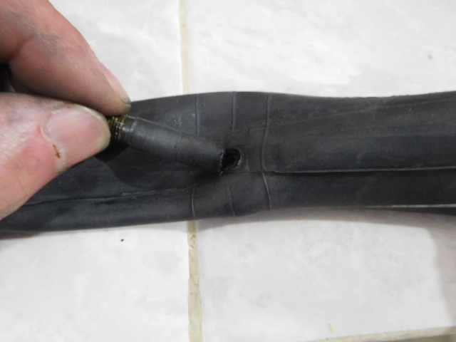 The theory is that our tire pump requires just a slight wiggle to get it off the stem once the tire is inflated. Clearly these tubes could not tolerate that little wiggle. In the old days tube stems were threaded all the way and had a little lock ring. Not these ones!