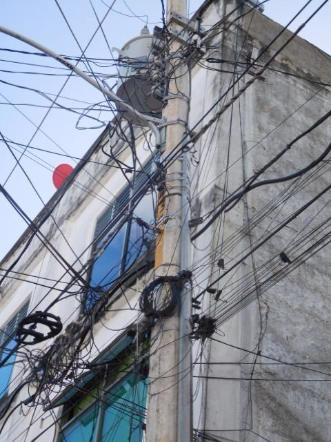 About 3 a.m. the power came back on, and Jorge appeared, to say that they had found a bundle of wire "on fire". Oh, ok. I'm glad they found it. I had been considering some investigation of the fuse box (not fuse panel, only one fuse!) in our room, but its bare wires were scary! Not more scary than the wiring on the street, I guess.