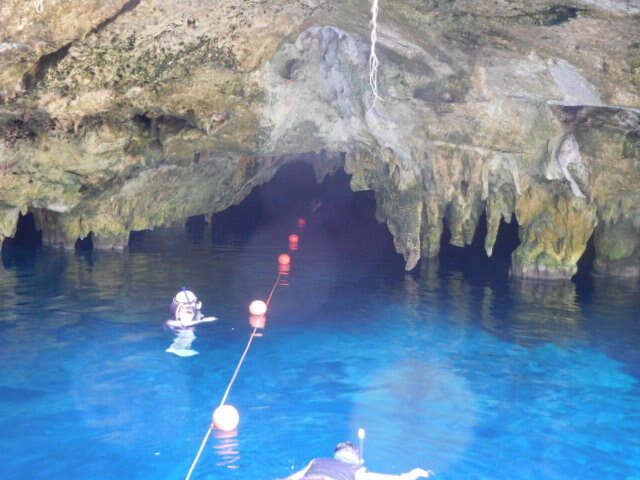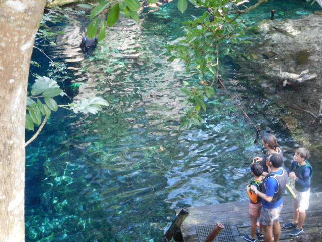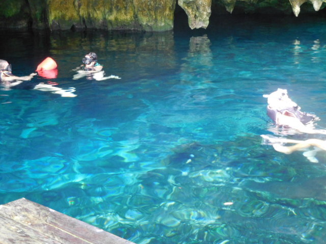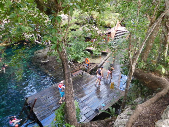The grounds of the cenote are lush and fairly extensive. It's a real thrill to walk along and then to look down into the blue cenote itself. Once you do enter the water, the clarity, the play of light and the turquoise colours make real any advertising hype about the back to nature and soothing aspect of this region. Any dust and heat is far away, and this truly is like a paradise.