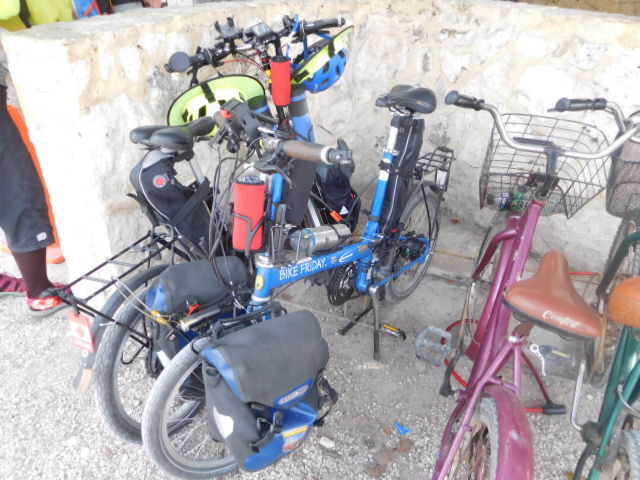 The ride out to the Gran Cenote was just 5 km, but they are suitably dustry and with lots of rumbling gravel and garbage trucks. We locked our bikes outside and headed on in.