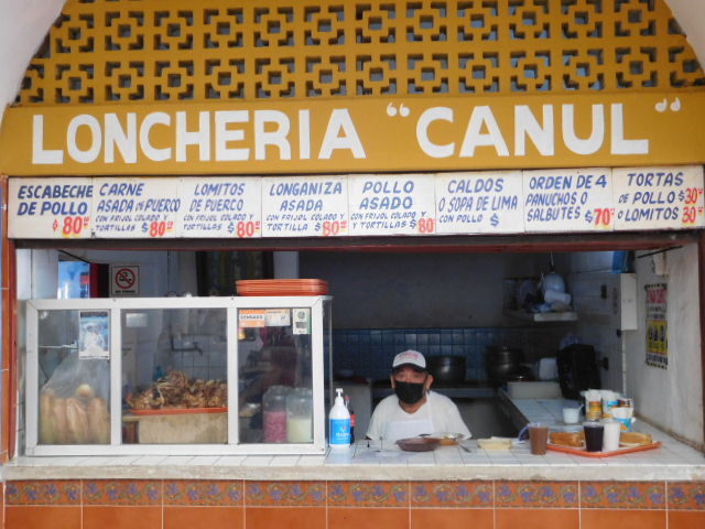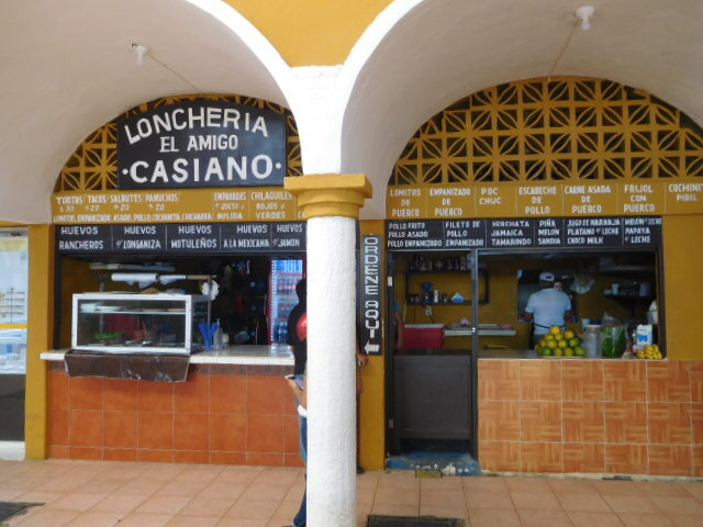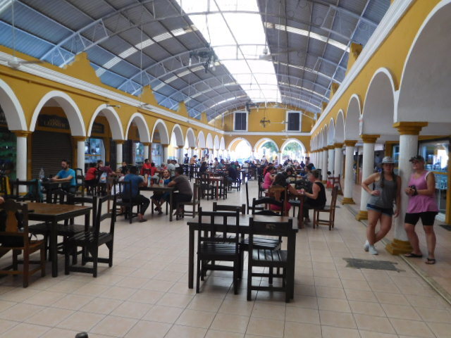 We found the HSBC machine, inside a really wonderful food court where many little restaurants are all offering essentially the same Mayan food.