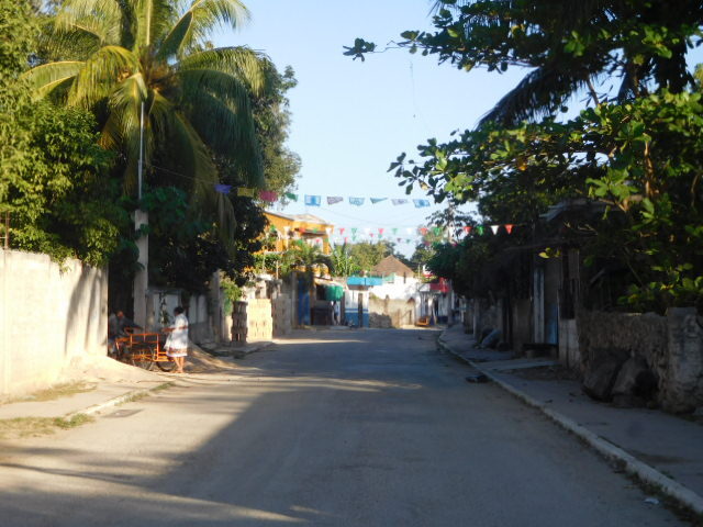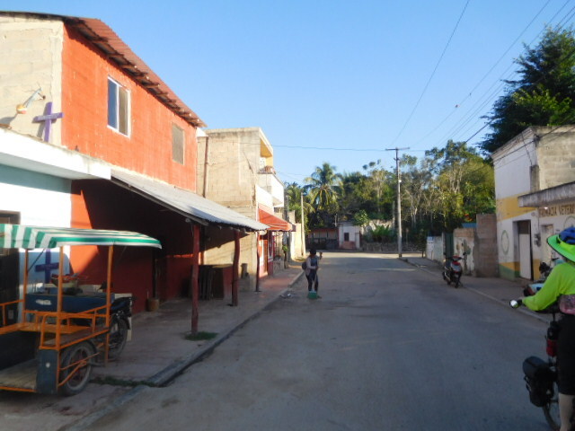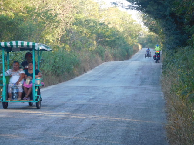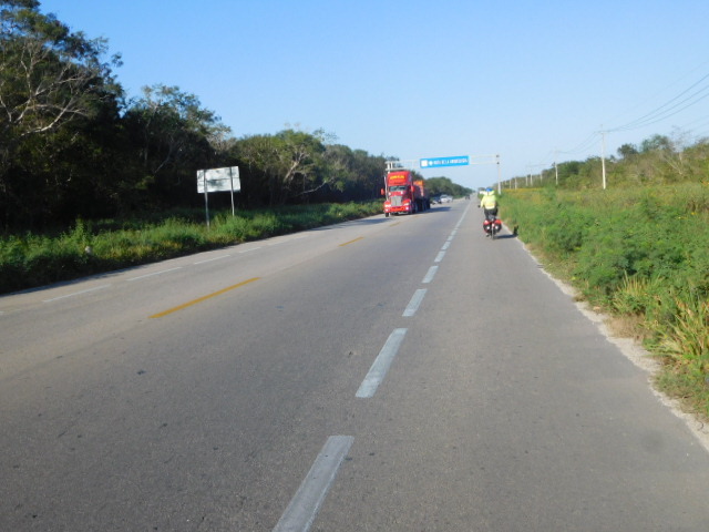 By about 7:15 the sun was well up, and our adventure in the dark came toan end. The road we were travelling, toward our first town - Chemax - was quite broad and smooth and with a faintly marked shoulder that afforded some sense of security. Most traffic was going in the opposite direction from us, which kept them out of our way, except when someone oncoming would suddenly pull out to pass.
