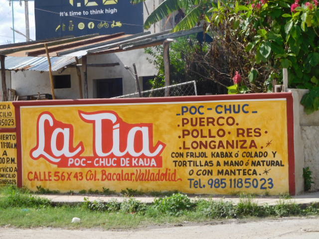 As we enter Valladolid, we are in the geographic centre of the state of Yucatan. That helps to make Valladolid a focal point of Yucatecan food - such as the Poc Chuc we stressed in our last visit here. So this sign on the outskirts is not kidding - this really is the place.