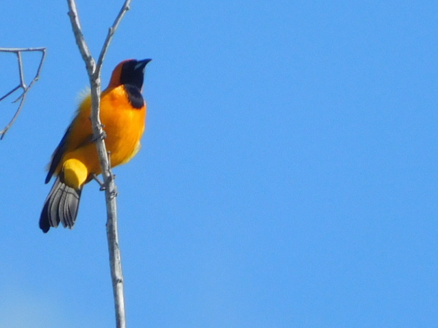 We are going to Rio Lagartos to look at Gulf of Mexico shore birds, especially the flamingos. But there were lots of birds along the way. As usual, Dodie is the spotter. I was glad we left early this morning, because she pottered along, looking left, right, and up. Then when a bird was seen, I stopped to try to zoom in on it. Get ready, bird identifiers, because here is what we saw. (Mostly we took out duplicate shots of a kind of bird, but some repeats remain because they give a bit of a different view, or we are too dumb to know that we already included a bird type.)