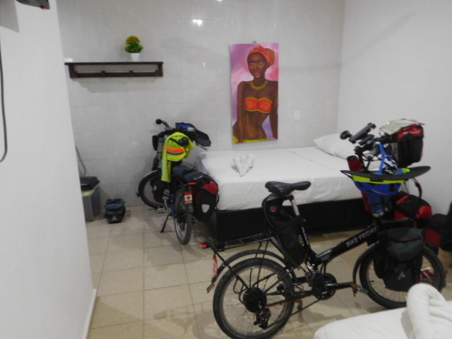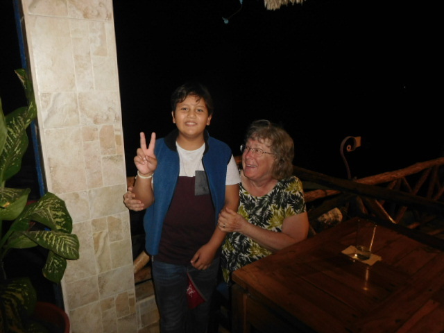 After stashing our groceries, taking advantage of the fridge in our room, we strolled over to Diego's place, which incorporates a large restaurant. Diego IV greeted us. We had imagined a large family gathering, with all sorts of food and merriment flying about. But we were sat at our choice of tables in the large restaurant and plied with food, eventually to be joined by Diego III and IV, and some very interesting other additions. Mrs. Nunez stayed in the background, but first we presented her with gifts of dried apple and tomato from our farm. she received these very graciously.