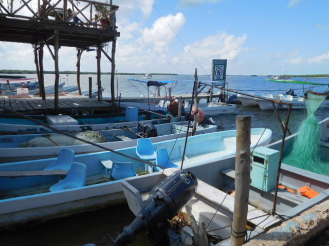 We hung a left and headed for the water, at a spot where we knew we would be able to arrange a boat tour of the coast. The reason was that in 2018 we had been here and done that. But it can never get old. For that tour we had found "Ria Maya Tours", which is run by Diego Nunez. Diego is #3 in a line of Diego's of the Nunez family that have run the company. In 2018 our guide had been Diego #4, who we were glad to see was still there. At that time, #4 had already spun off #5, who was just about 4 year old. Now 9, we hope he is soon ready to be a guide. We expect to meet him later.