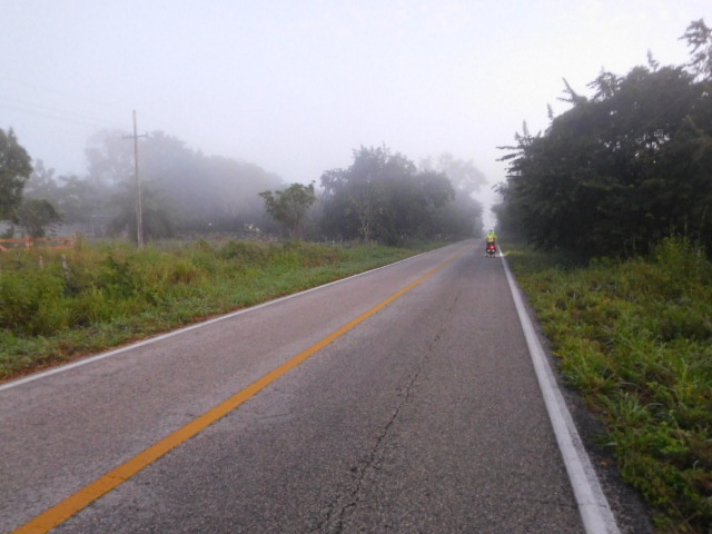 It did not take long for us to hit the open road. There was really a lot of fog or mist in the air -which we could clearly see in our headlight beam. When daylight came, the mist persisted, and we kept our lights on.