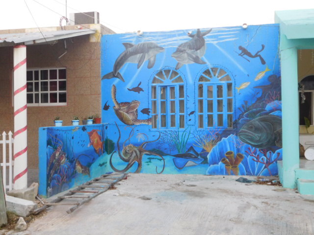 Our walk also revealed some very cute houses, like the one below with the flamingos or the one with an ocean scene.