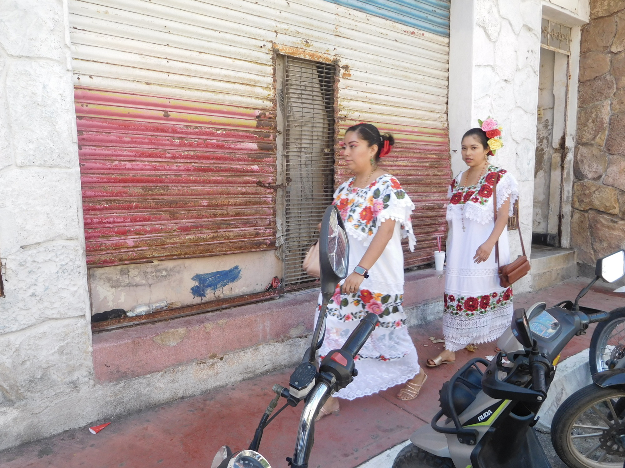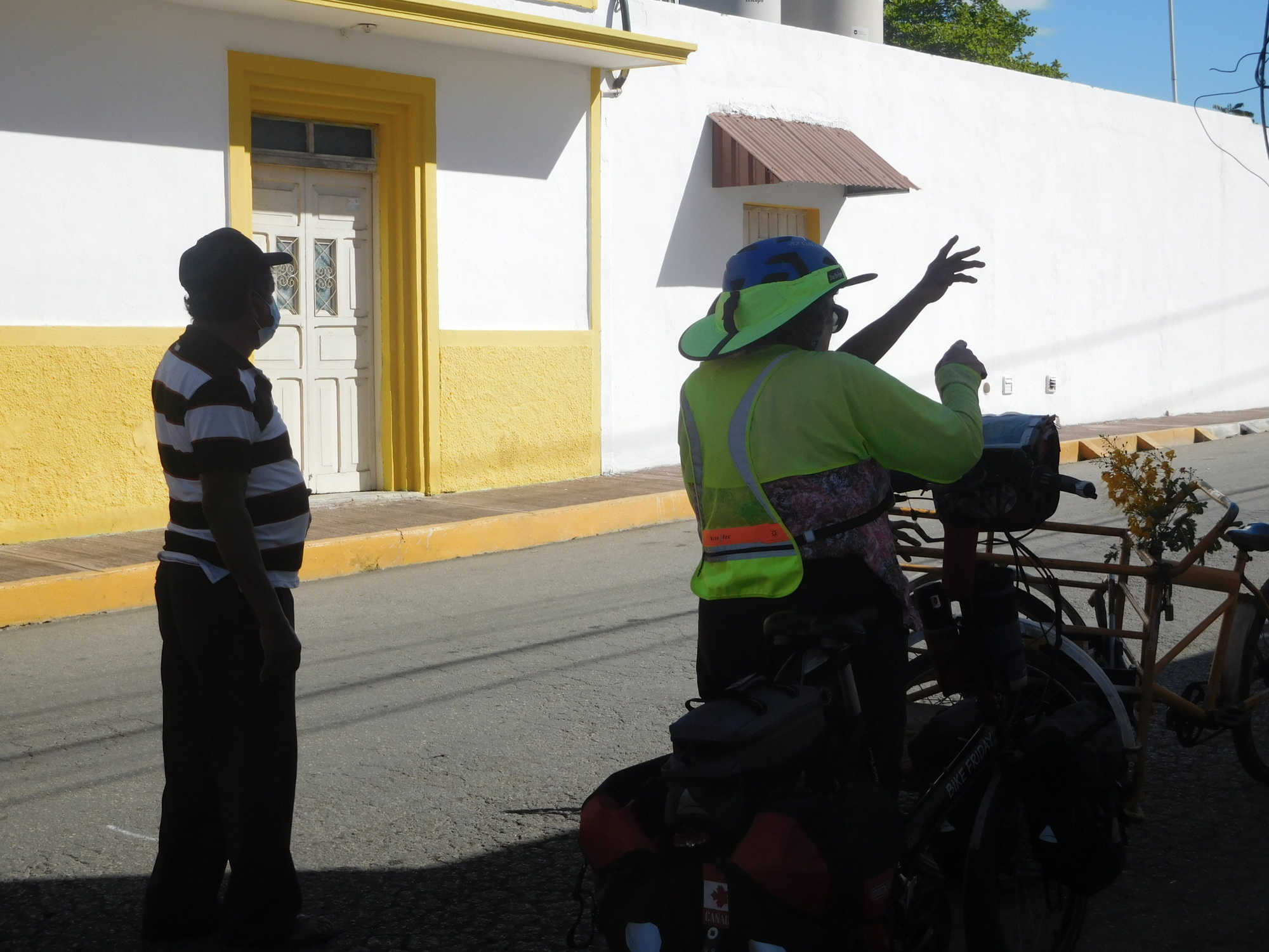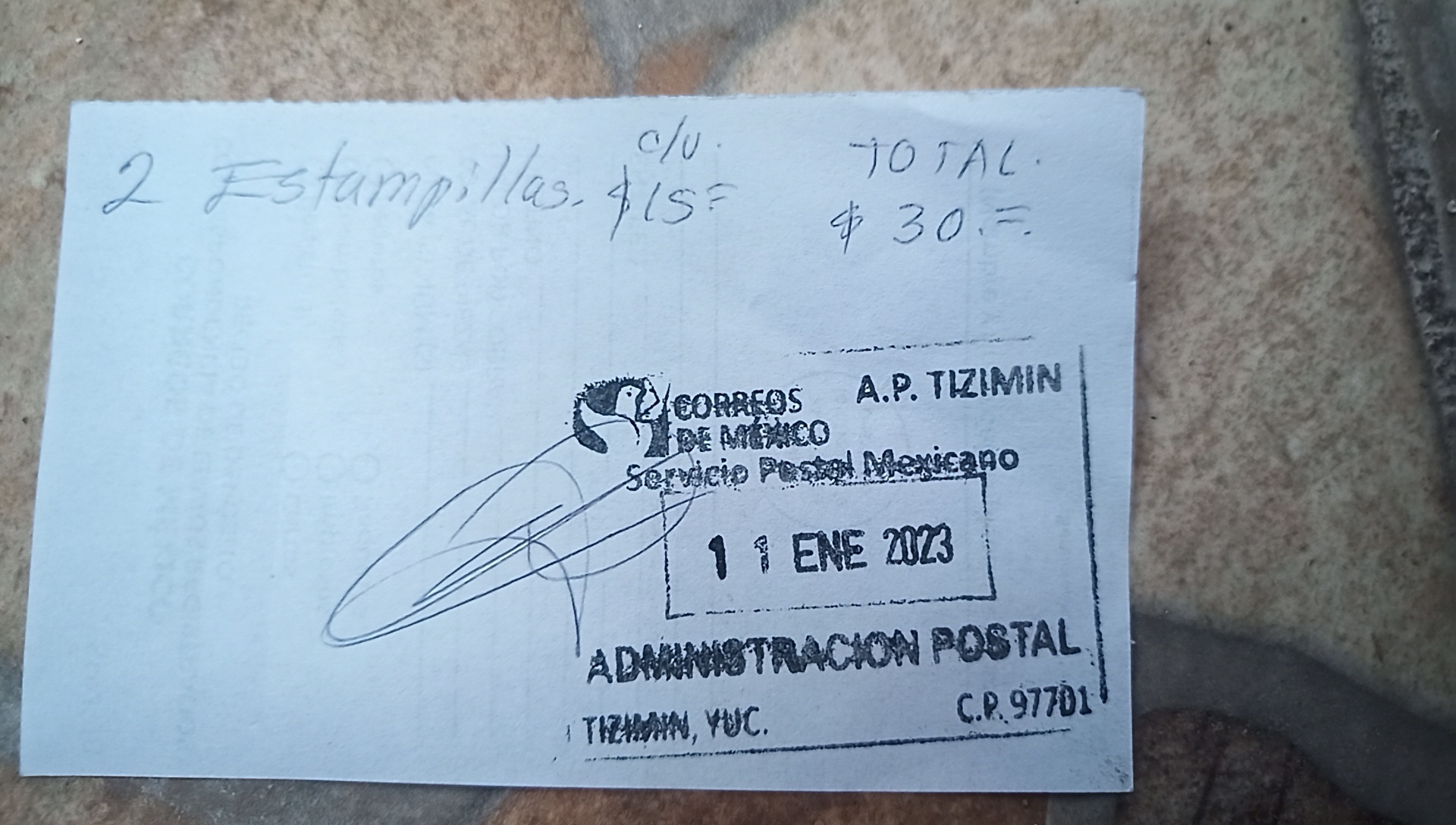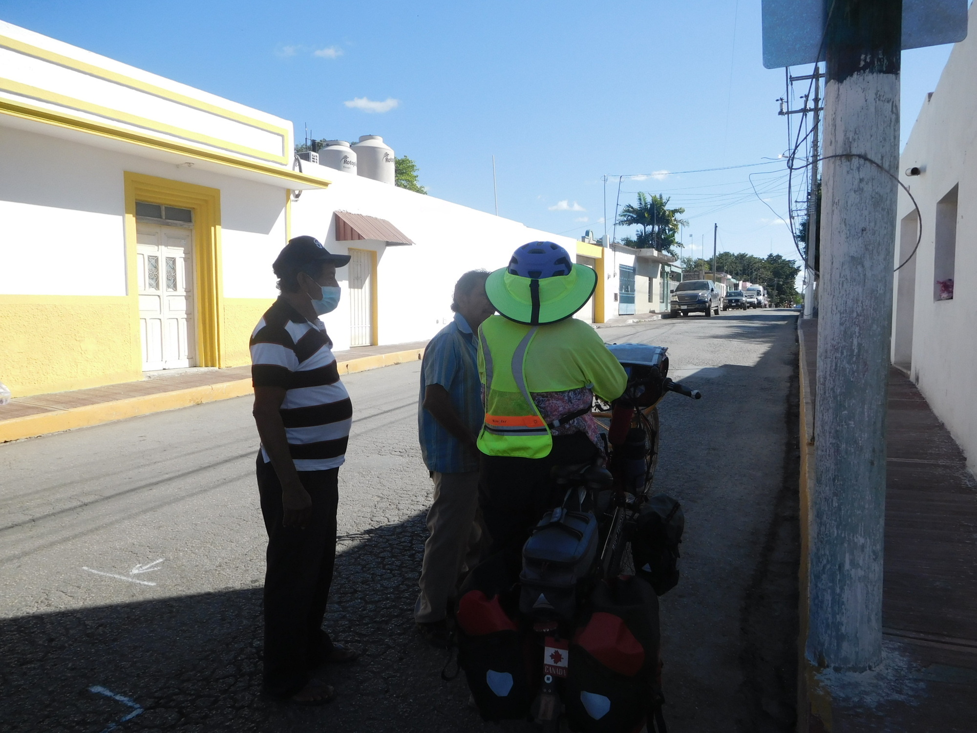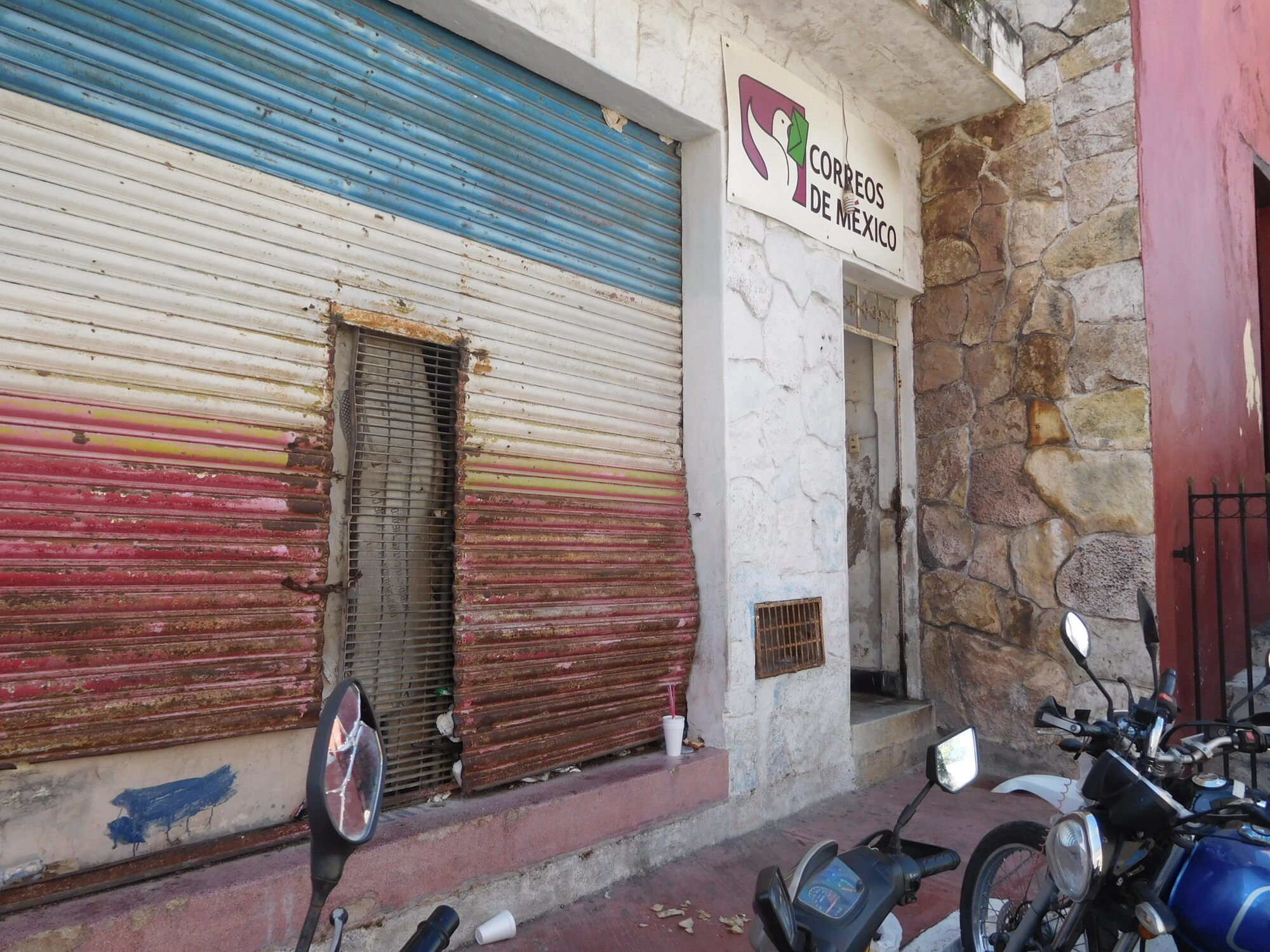 Dodie went in and found that to send the cards would take stamps. But the post office in this town of 80,000 did not have any stamps. No problem, they could get some from Valladolid (population 85,000)! So Dodie gave the man the requested 30 pesos, in the form of two 20's. This caused a kerfuffle, because 10 pesos change could not be found. Dodie came back out to the bikes, and we dragged exact change from our coin jar. Dodie also got an official receipt, and the promise that they would get the stamps and get on it within a week! Hapless Canada Post and the Royal Mail are starting to look better to us, but maybe Correos de Mexico is ahead of the game. Who sends letters anymore anyway! Grandkids - if you ever get these cards, drop us a Whatsapp!