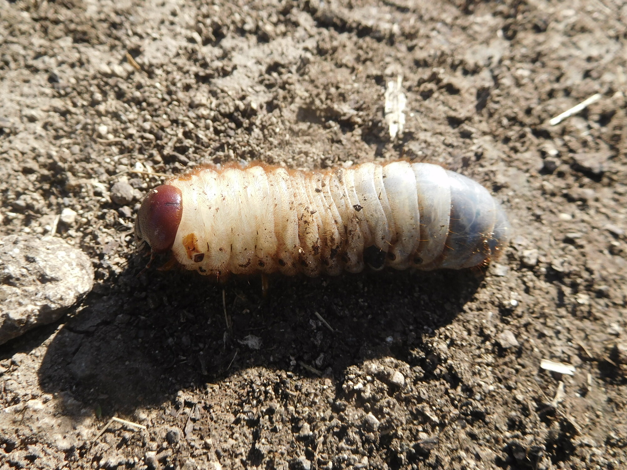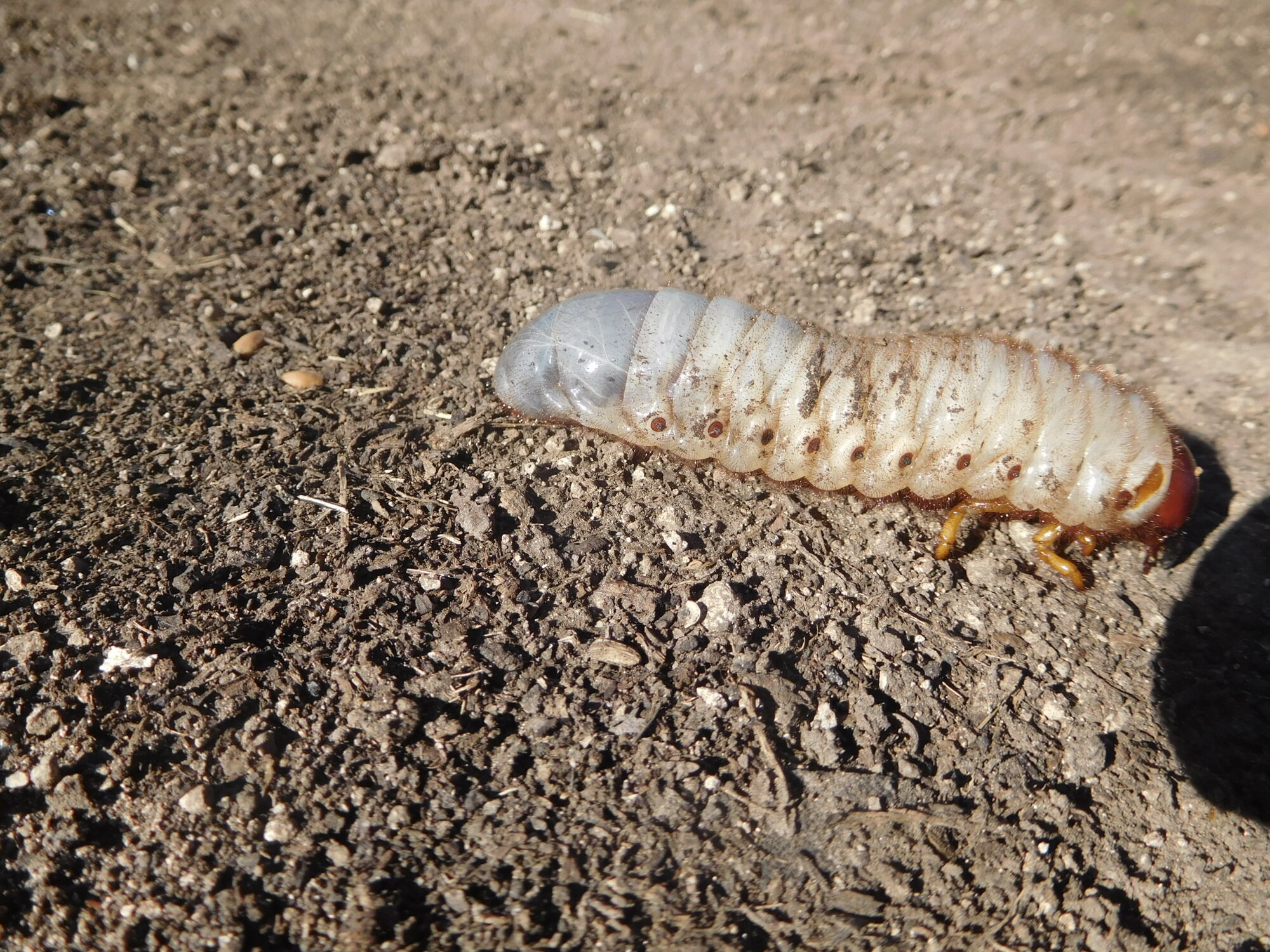 Now here is a real puzzler. This giant grub? was making its way by the road. It has a red head and grey butt, and is moving its body only with legs mounted up front!