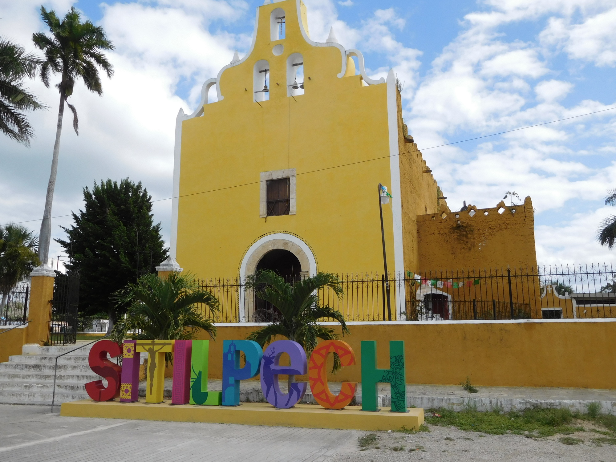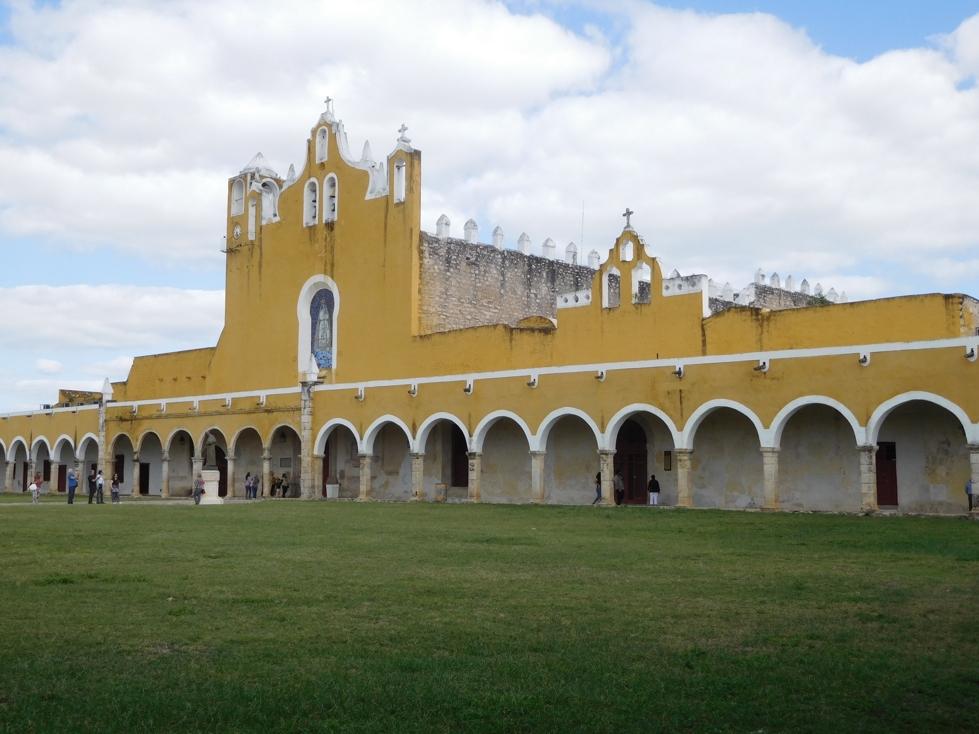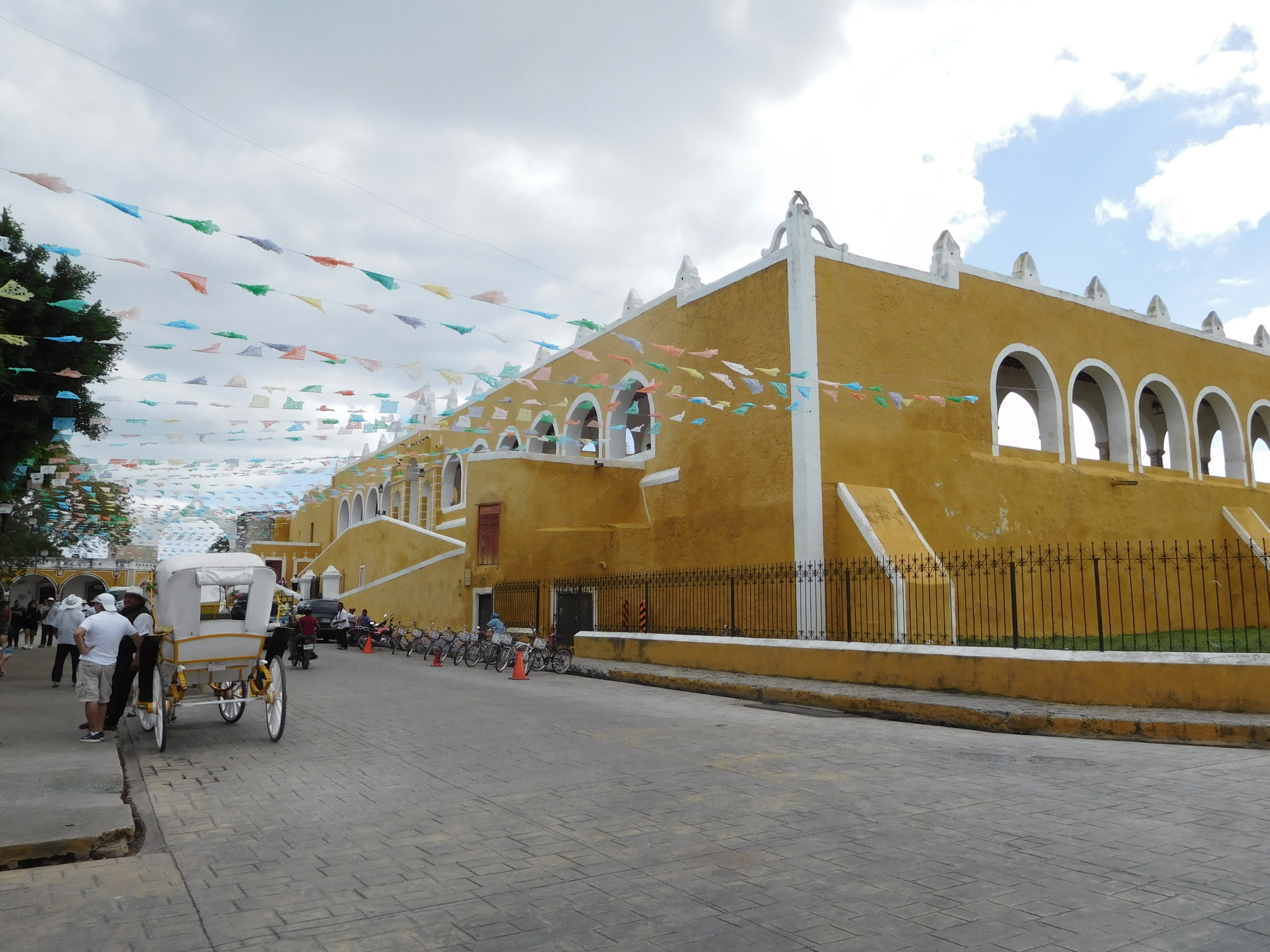 By 1 p.m. we arrived in Izamal, in fine shape because the temperature, that had spiked to 31 had settled down to about 27. Here on the outskirts we already see that every house is yellow.