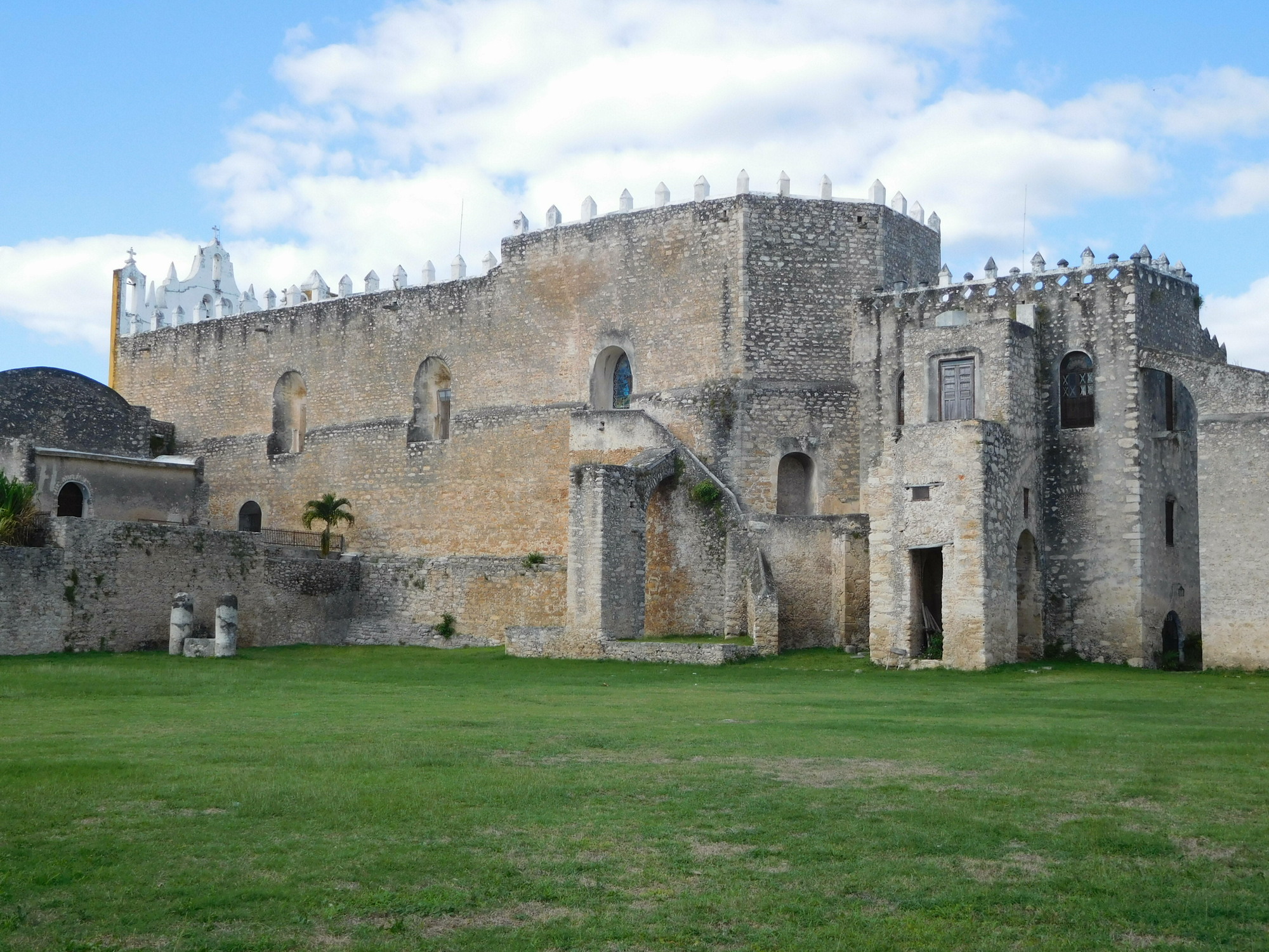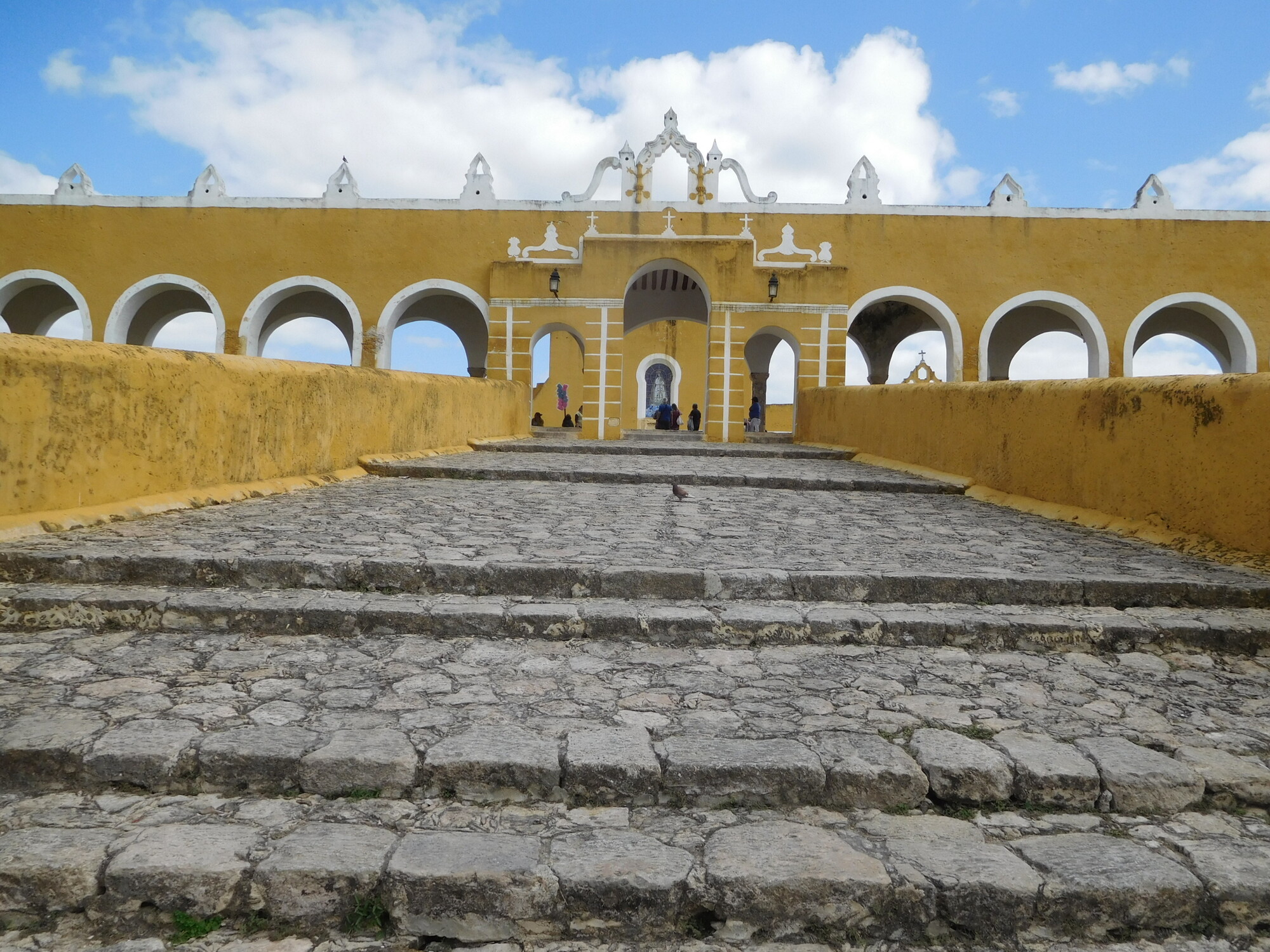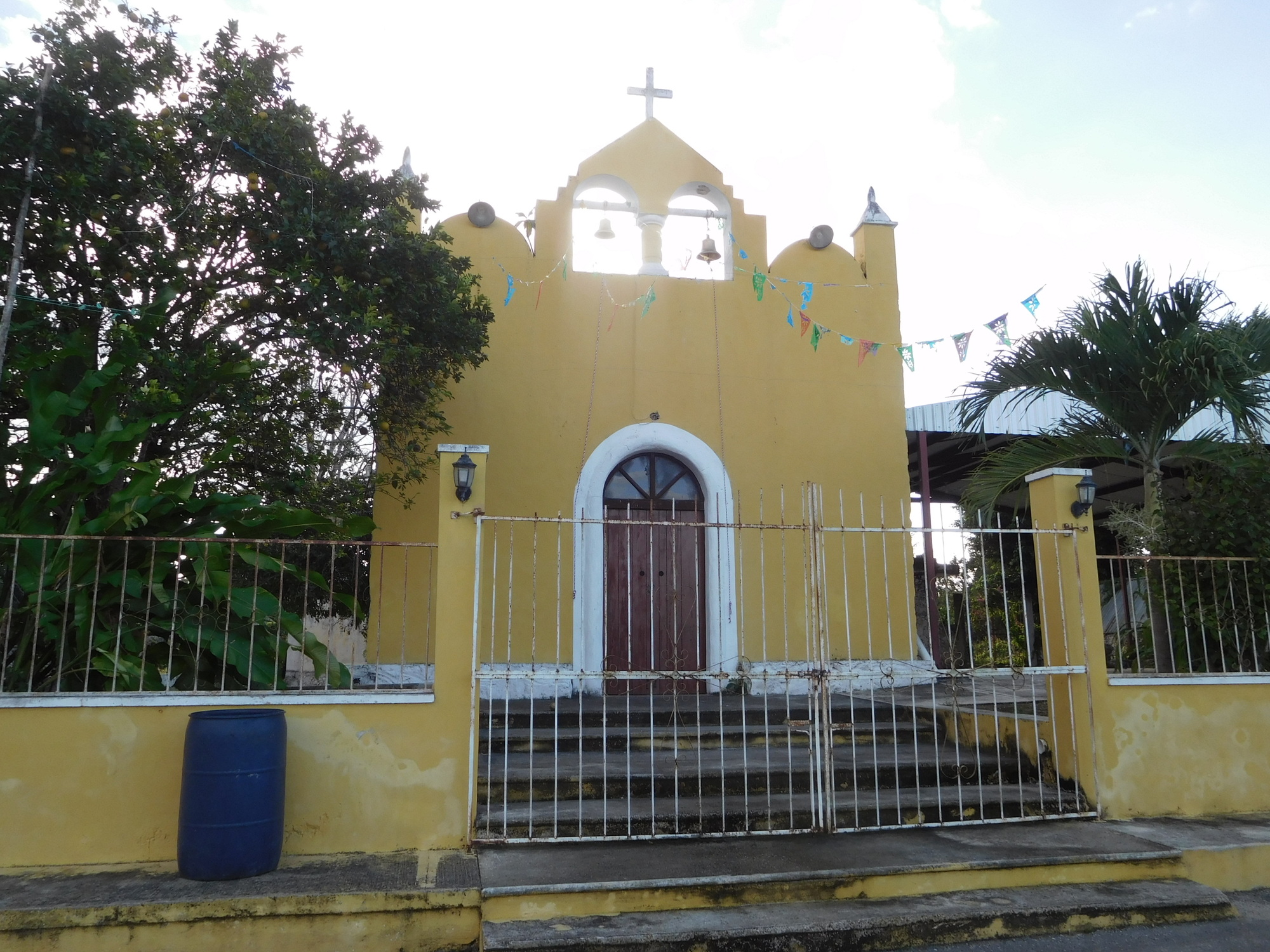 By 1 p.m. we arrived in Izamal, in fine shape because the temperature, that had spiked to 31 had settled down to about 27. Here on the outskirts we already see that every house is yellow.