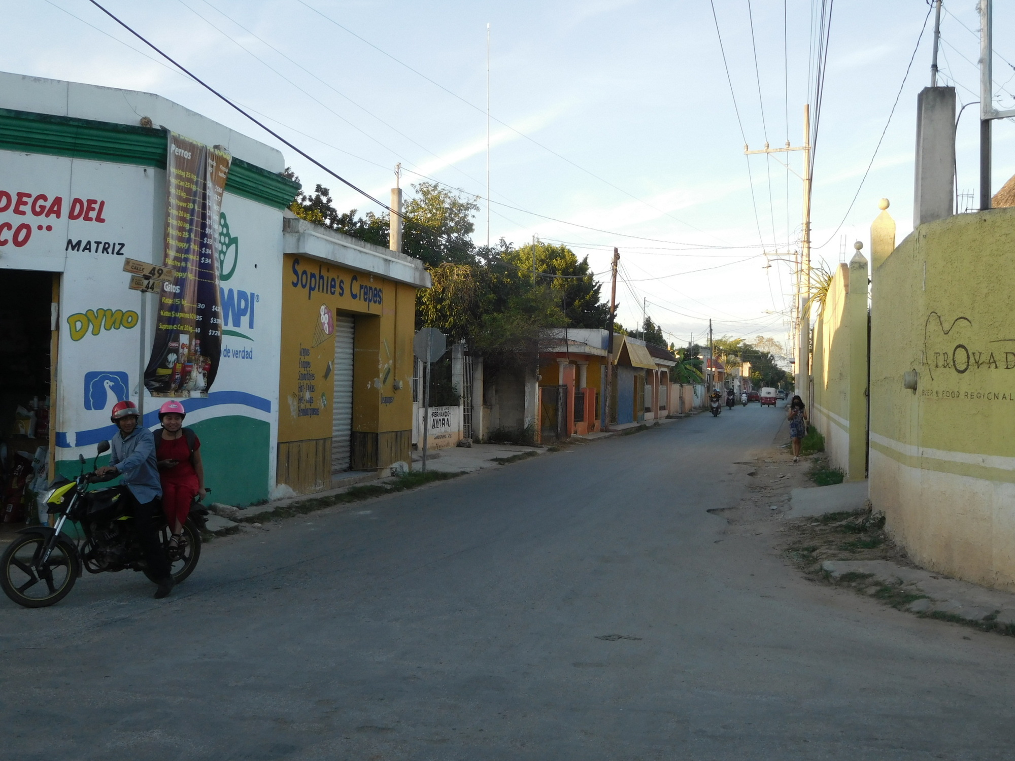 We arrived at Oxkutzcab around 2 p.m. and found it to be a quite hot and dusty small town. However our hotel, the Puuc Hotel, has A/C, no problem about the bikes, and even a pool, though it is way off on the grounds and really too far to nip over to and back. But now, after 2 hours in the A/C, we are ready to venture out into the town. Google Maps shows a Soriana Express grocery a few blocks away. Hooray!