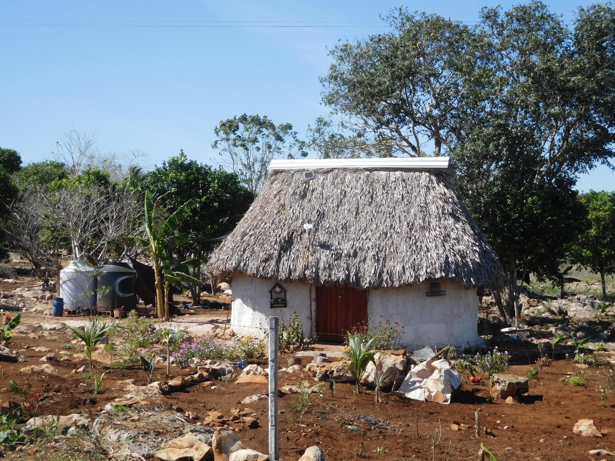 Two incidental things from along the way. We really do see a lot of women wearing the traditional white embroidered dresses for everyday use, and we do see traditional houses, like the one below.