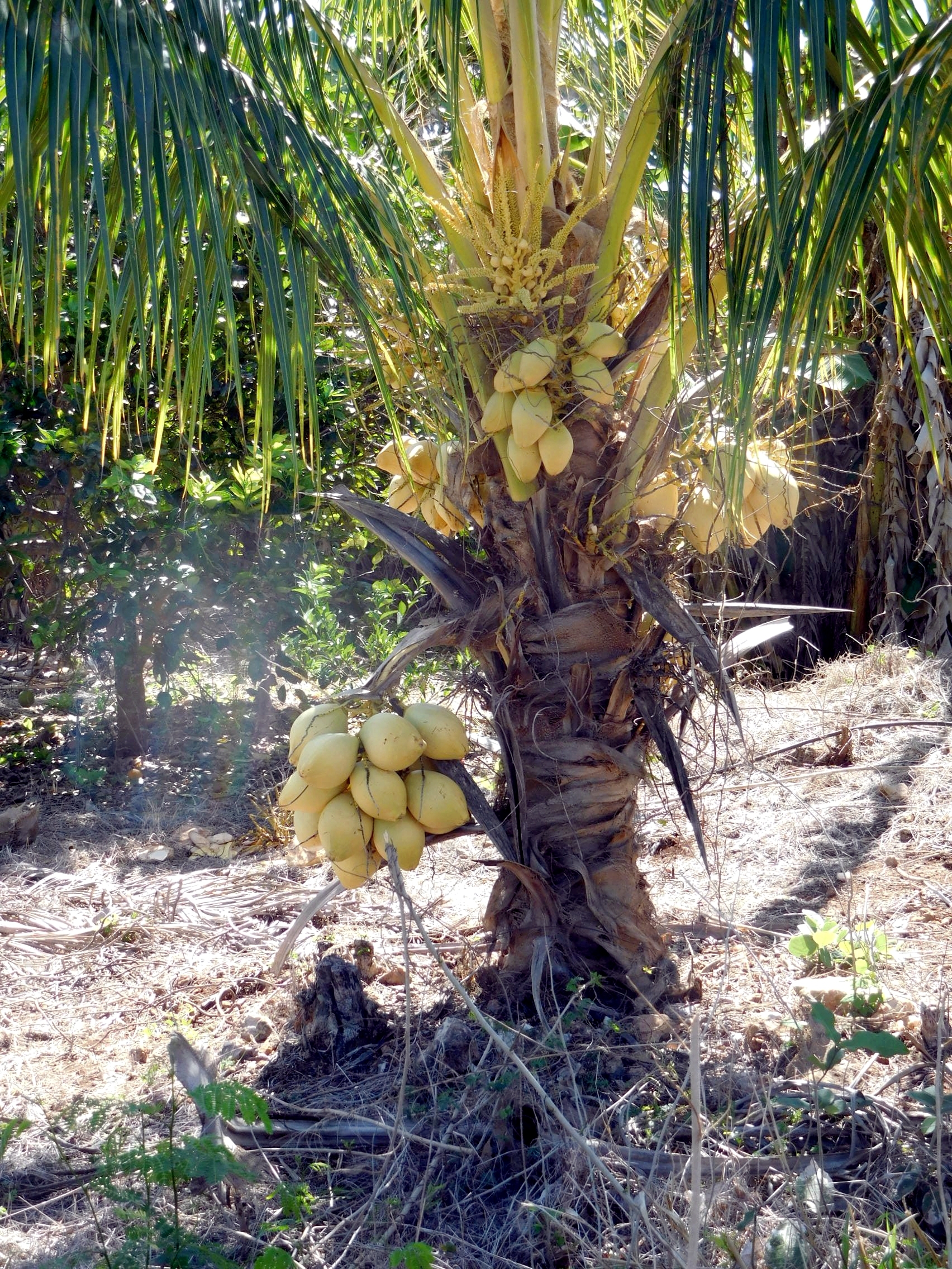Then there were coconuts. We were impressed that no monkey would be needed to gather these. But we have no idea when they are ready. Should these have brown husks?