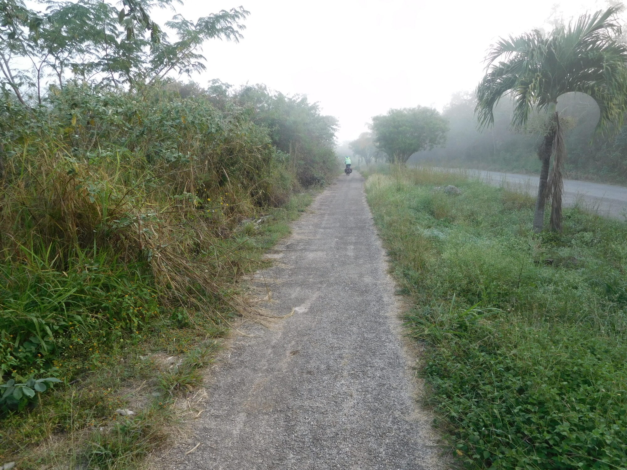 Even when the sun was up, there was a heavy mist over everything. The sun took a long time to burn it off. So at first we felt damp and chilly (with a starting temperature of 14 degrees) and then progressed to damp and hot. Today the maximum temperature actually hit 45 Celsius on my handlebar. That's an incredible 113 degrees F.