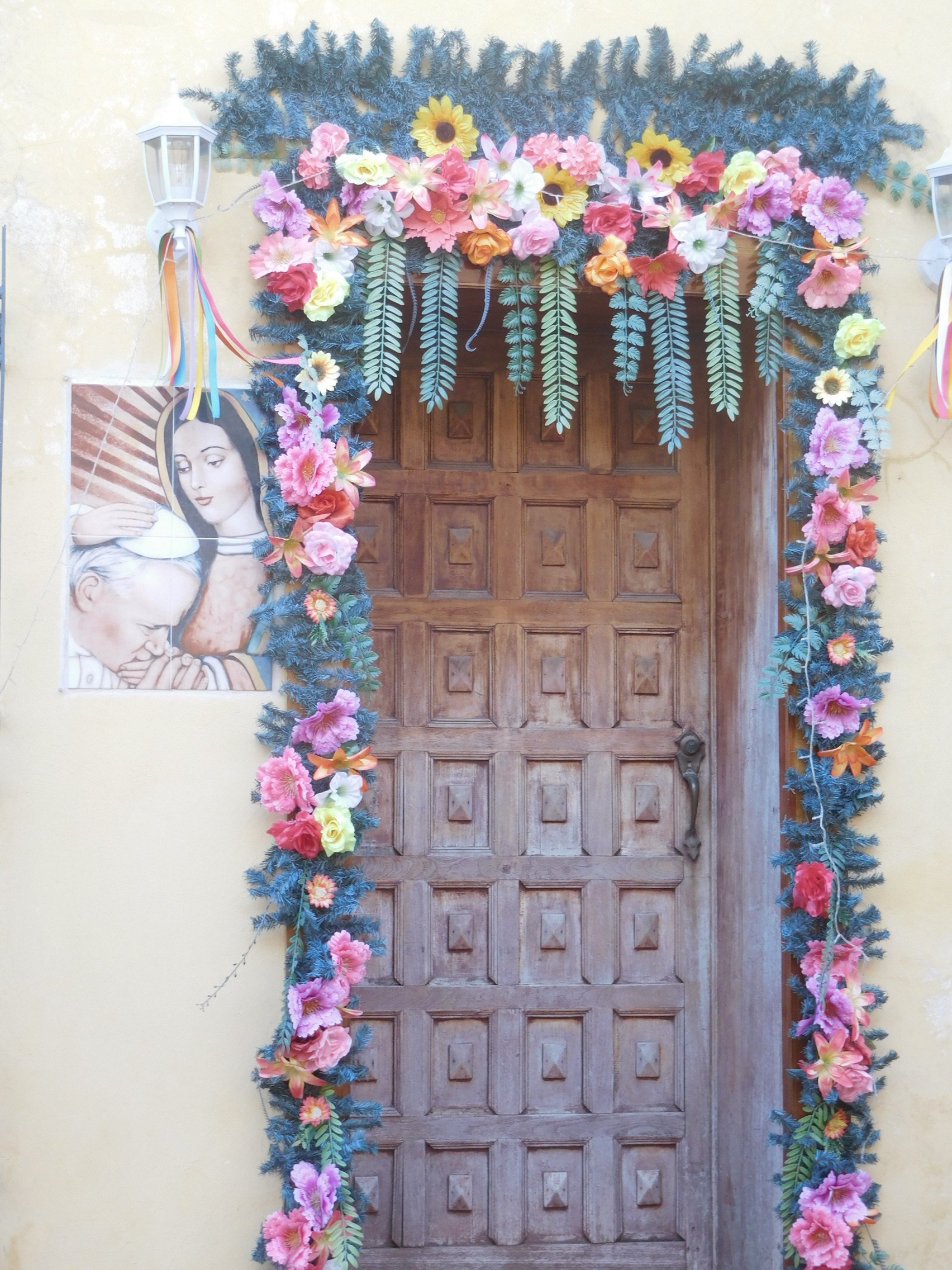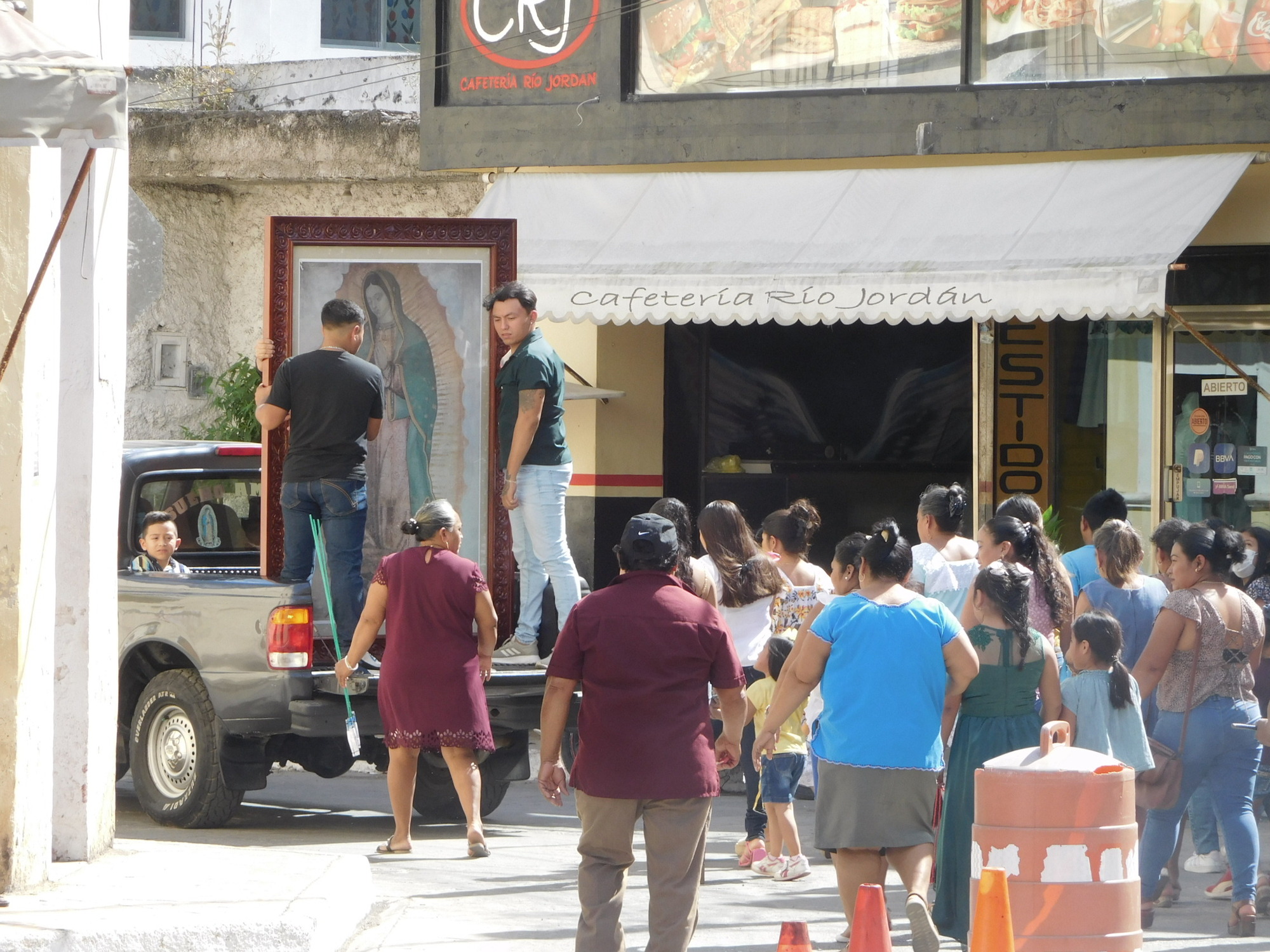 The church was closed, but we still got some religion, in the form of a parade with an image of ... could be Mary, more likely the Virgin of Guadeloupe. Have a listen:
