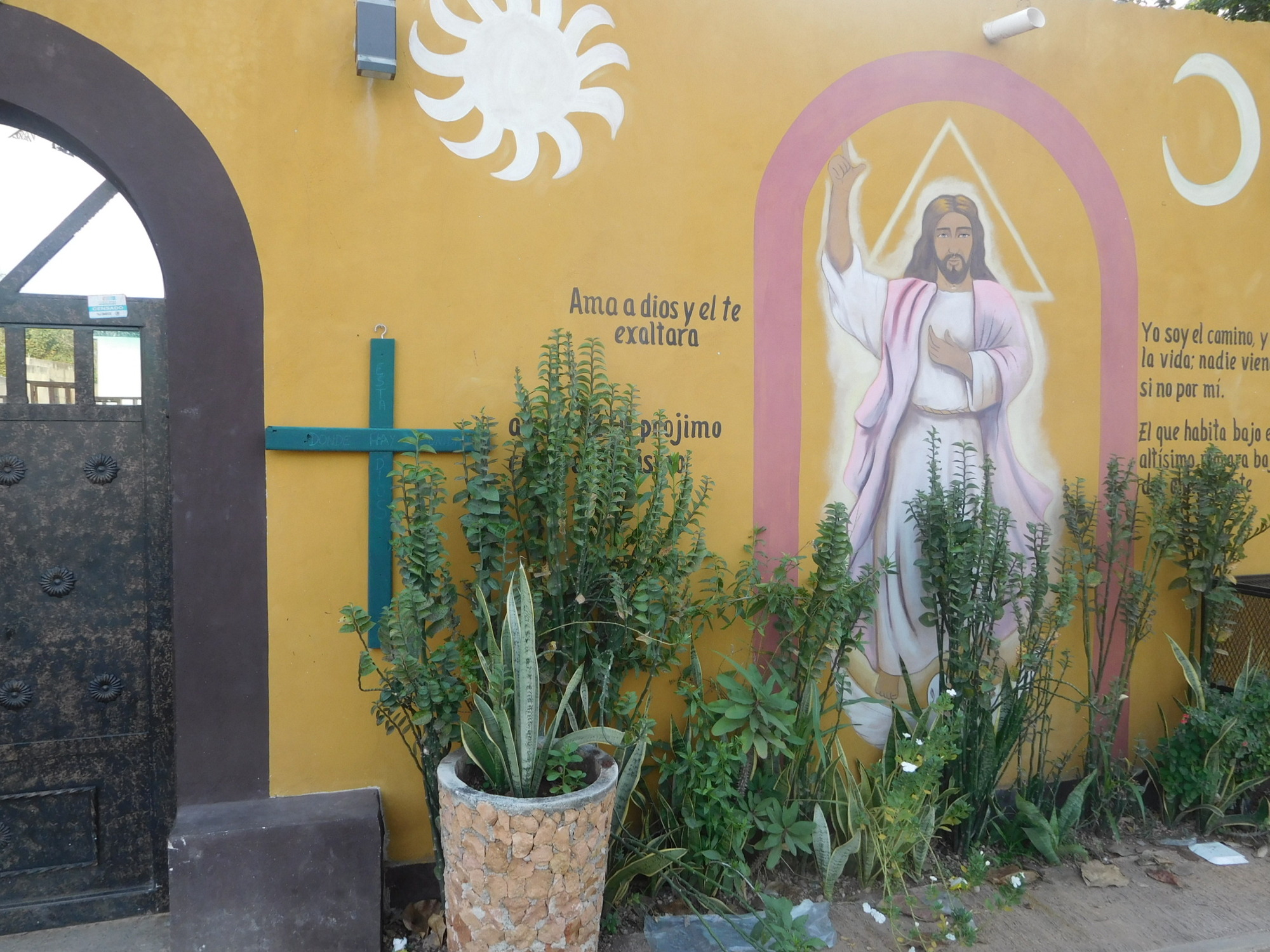 Mani gave us the overall impression of having very lush foliage, and quite a lot of traditional houses. It was a beautiful, tropical place. We also noticed right away the green crosses, that are a symbol of the rebellion of the Maya against the Spanish. However religious symbols seemed to be around a lot, indicating that the Spanish got somewhere with the whole thing in the end.