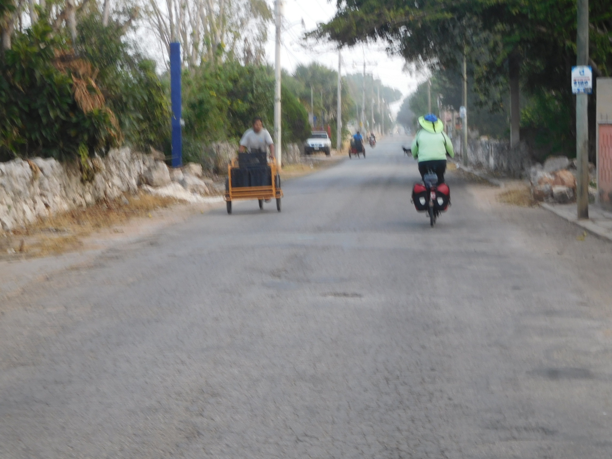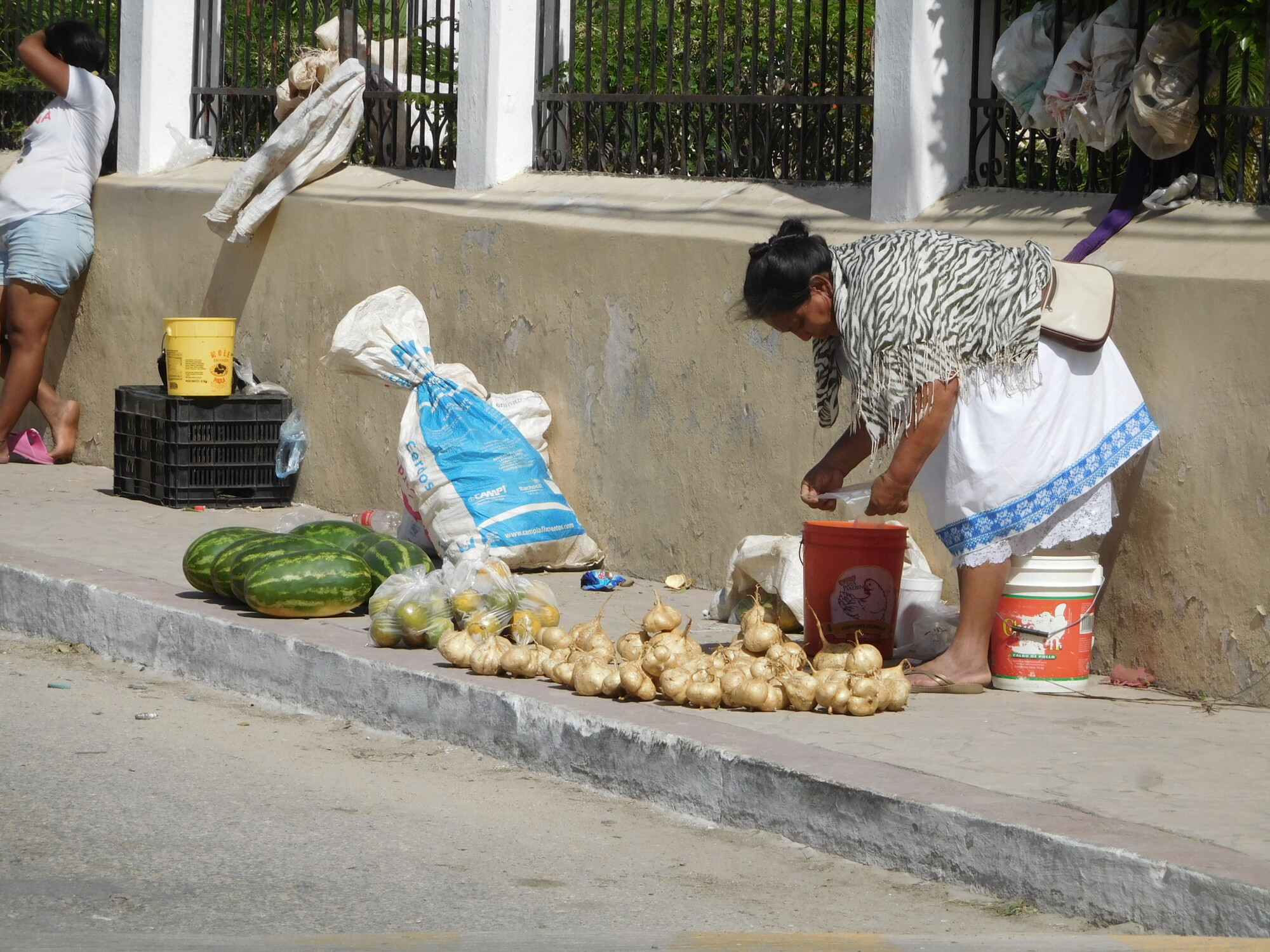It was really fun yesterday passing through such an active agricultural area. Oxkutzcab is definitely the commercial centre of the region, something we say as we set off early this morning, and found that lots of other people were up, setting up their stalls at the municipal market. It was still rather dark, and things were not set up yet, but we could see that there were crates and crates of oranges. It was surely more than the people of this town could buy today, so the market must be supplying a larger radius.