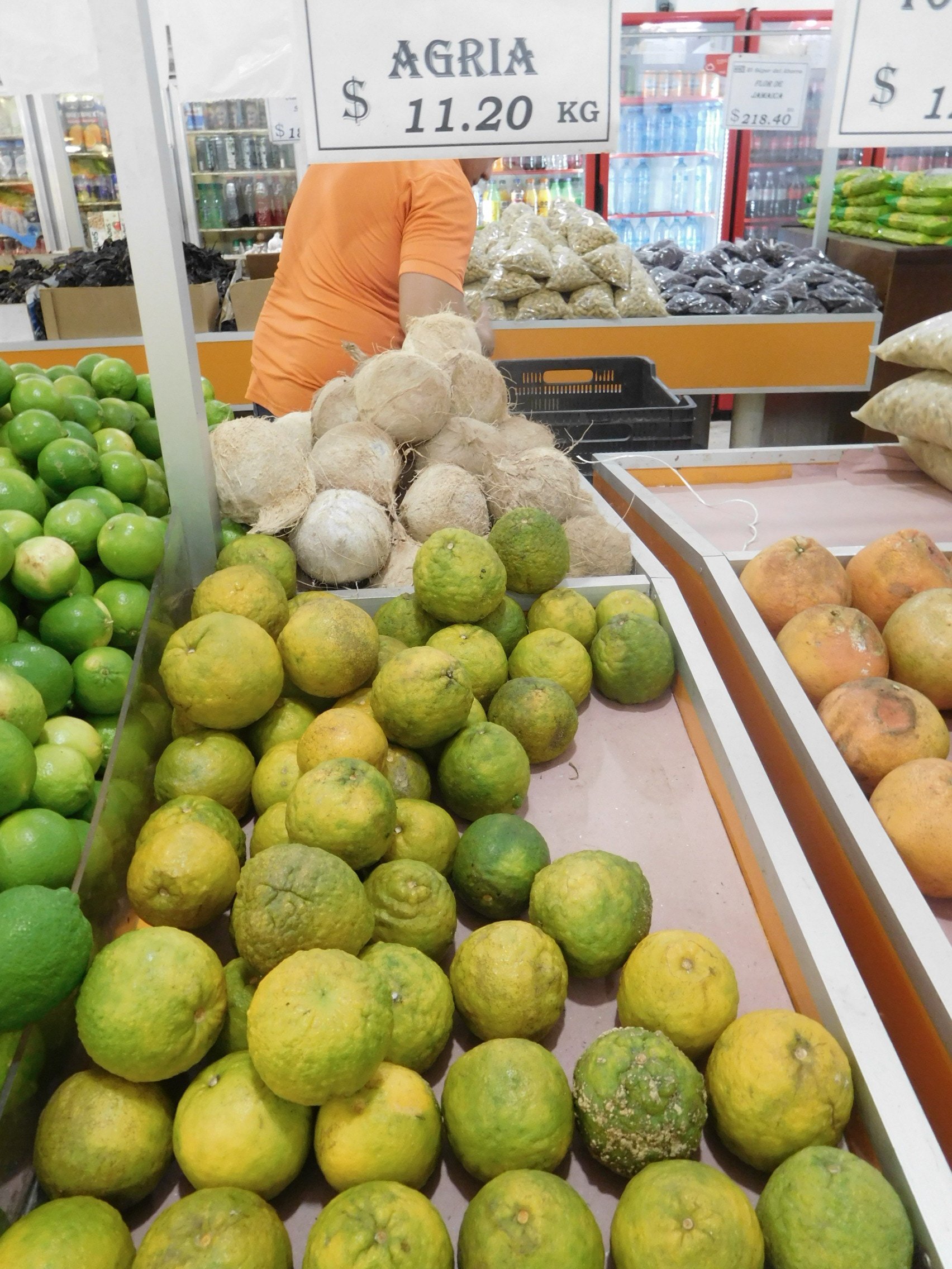And there were sour oranges. The sour oranges are needed for making a marinade for poc chuc. I was hoping to find this in a bottle to take home, but no luck. The stock boy I asked about it could only advise to buy the oranges, squeeze the juice, and get on with it!