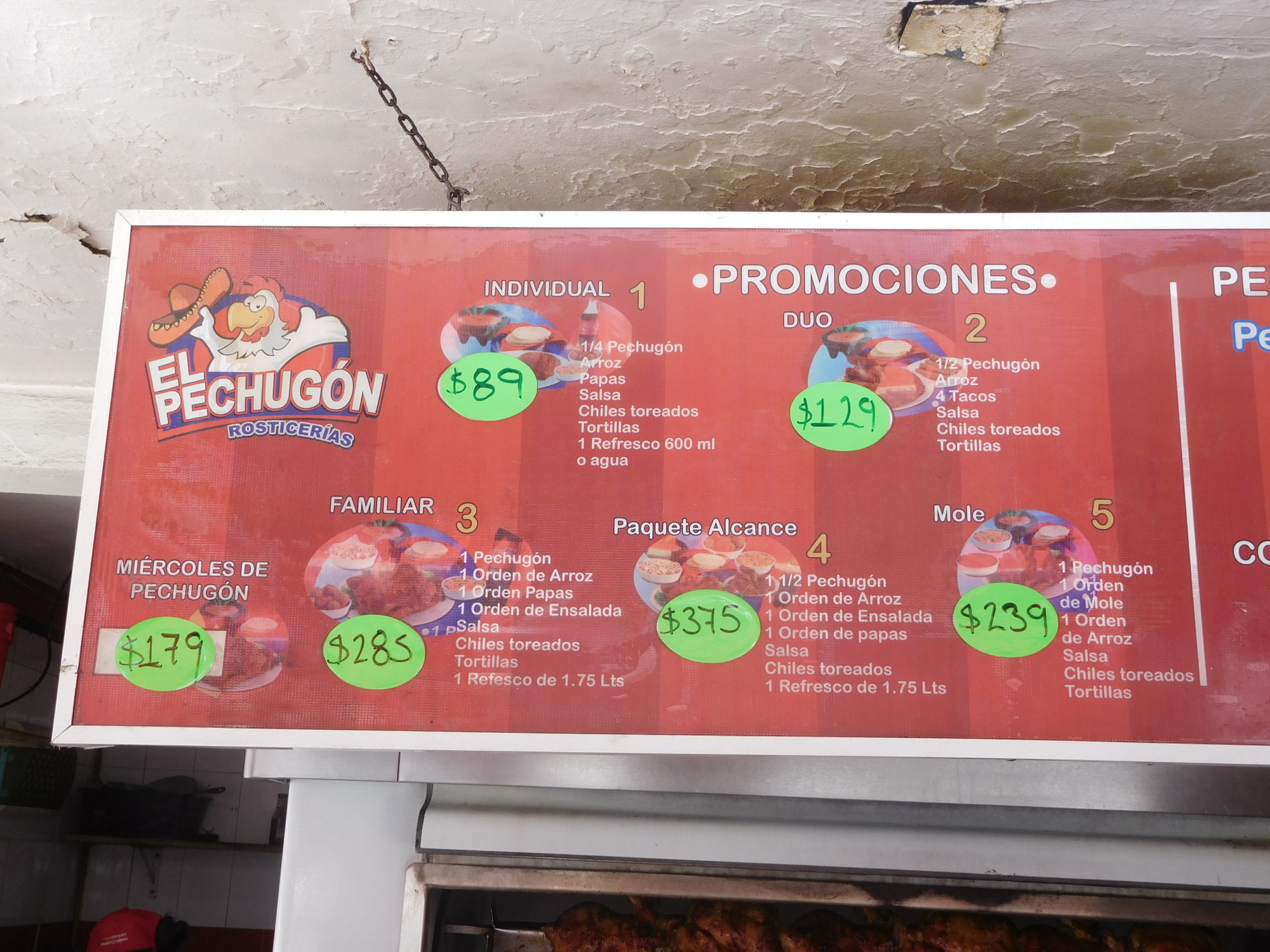 The French resemblance only went so far, of course. The package we brought home had three really fiery green chillies, some equally fiery frijitos sauce, a pile of tacos in the form of cigar like rolled meat filled fried tortillas, two bags of flavoured rice, and a stack of fresh tortillas. It was a lot of stuff for 129 pesos.