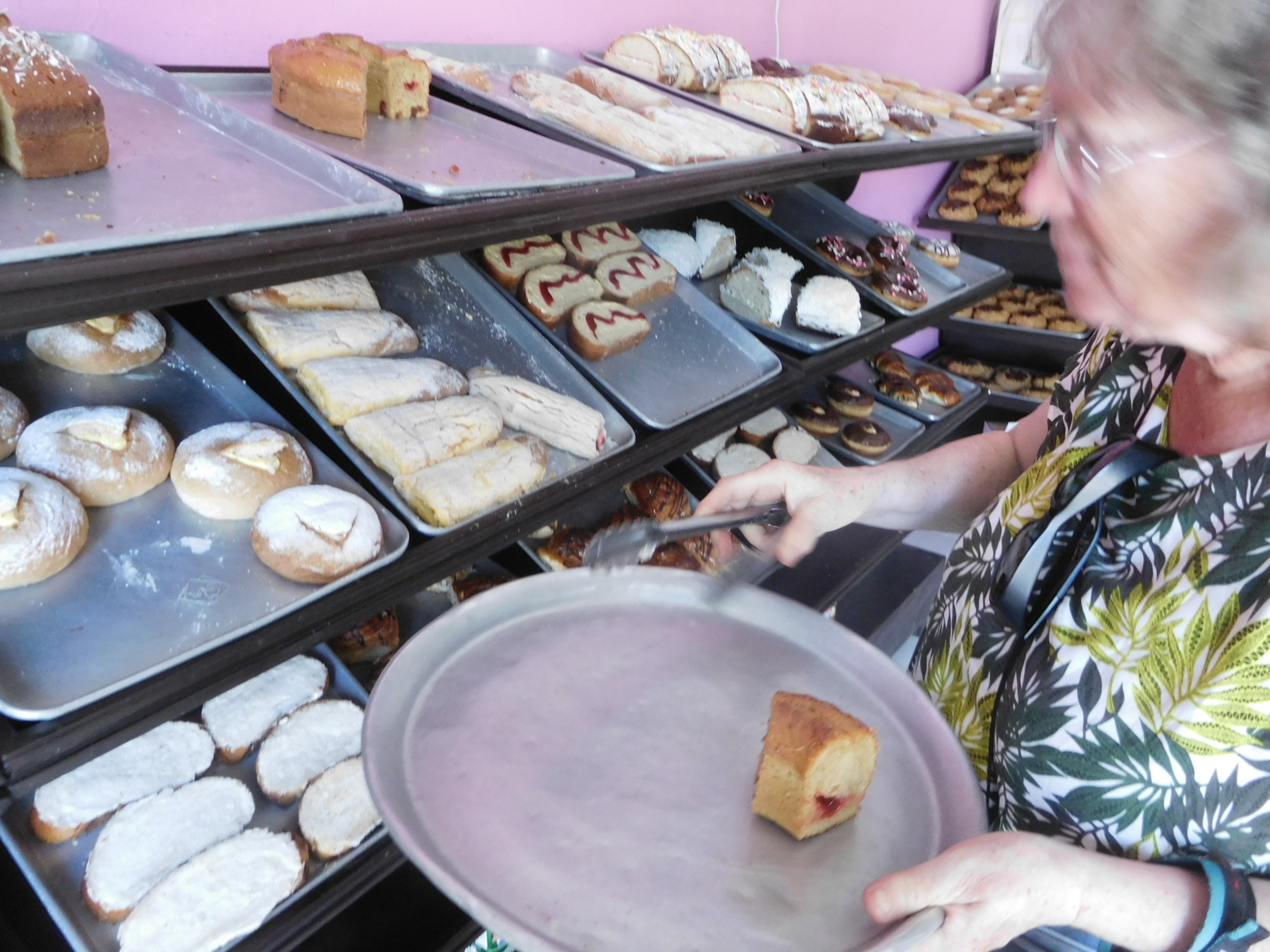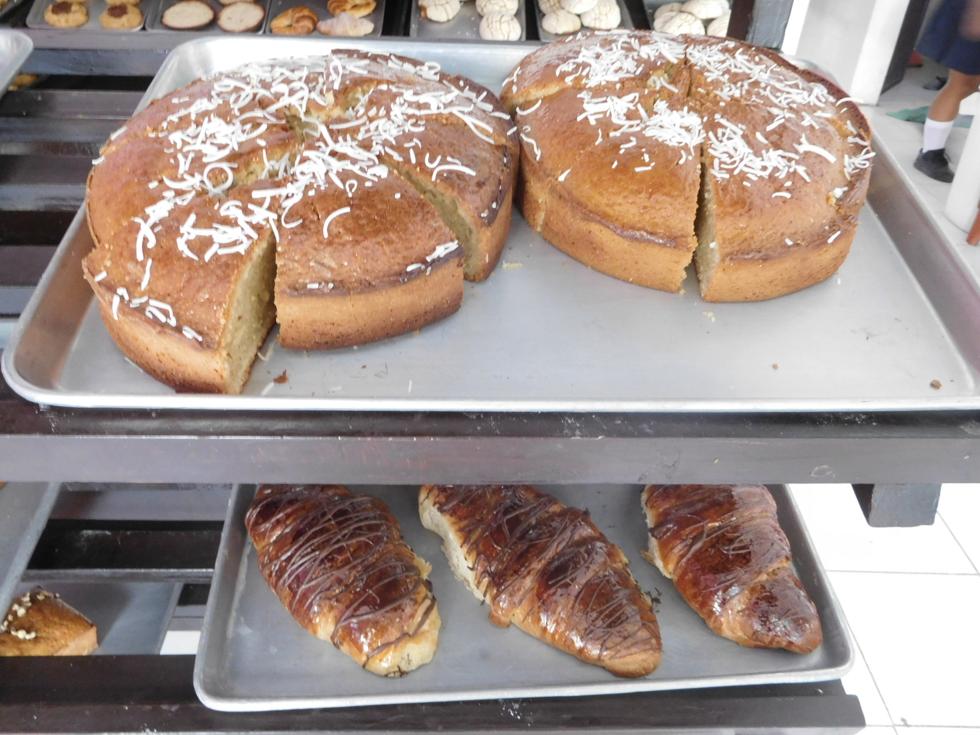 At the bakery we found the unusually good selection that we knew we would . When we spent a week in this neighbourhood last year, I got to know this bakery well. None of the products are European quality or style, but some are quite acceptable, especially the cakes. An unexpected bonus was running into the baker at the door, and exchanging some pleasant words with him. His optimism and smiles were a welcome change from the voodoo prison we had temporarily escaped.