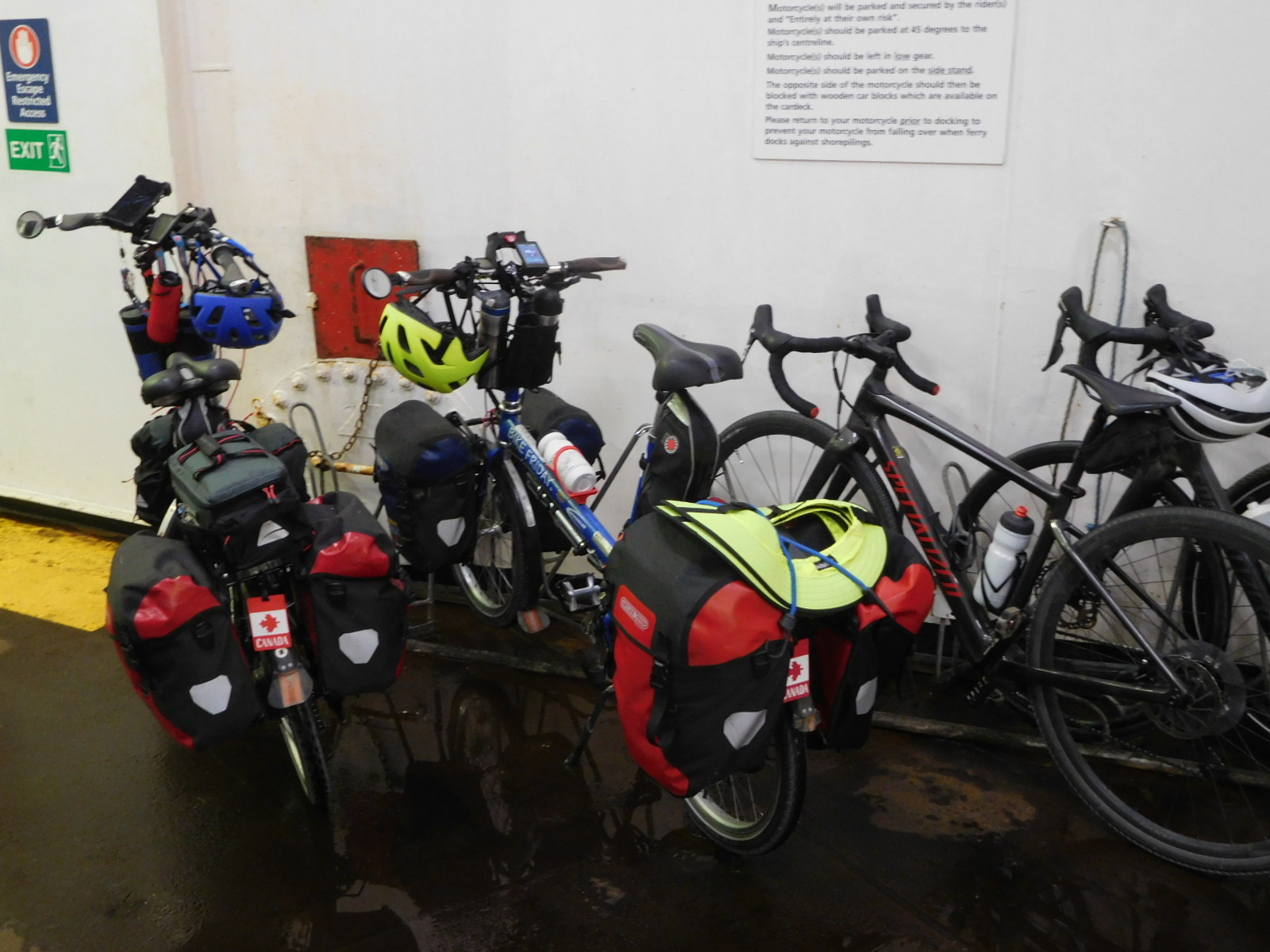 We had conceived this trip and done our planning pretty much in isolation, drawing support mainly from friends on Cycleblaze. So it was unexpected and very welcome when we arrived at the ferry terminal, to find other touring cyclists already stacked up. The customary exchange of where are you going, where are you coming from, oh, where did you get this piece of gear, etc. etc. ensued, and we were happy to participate.