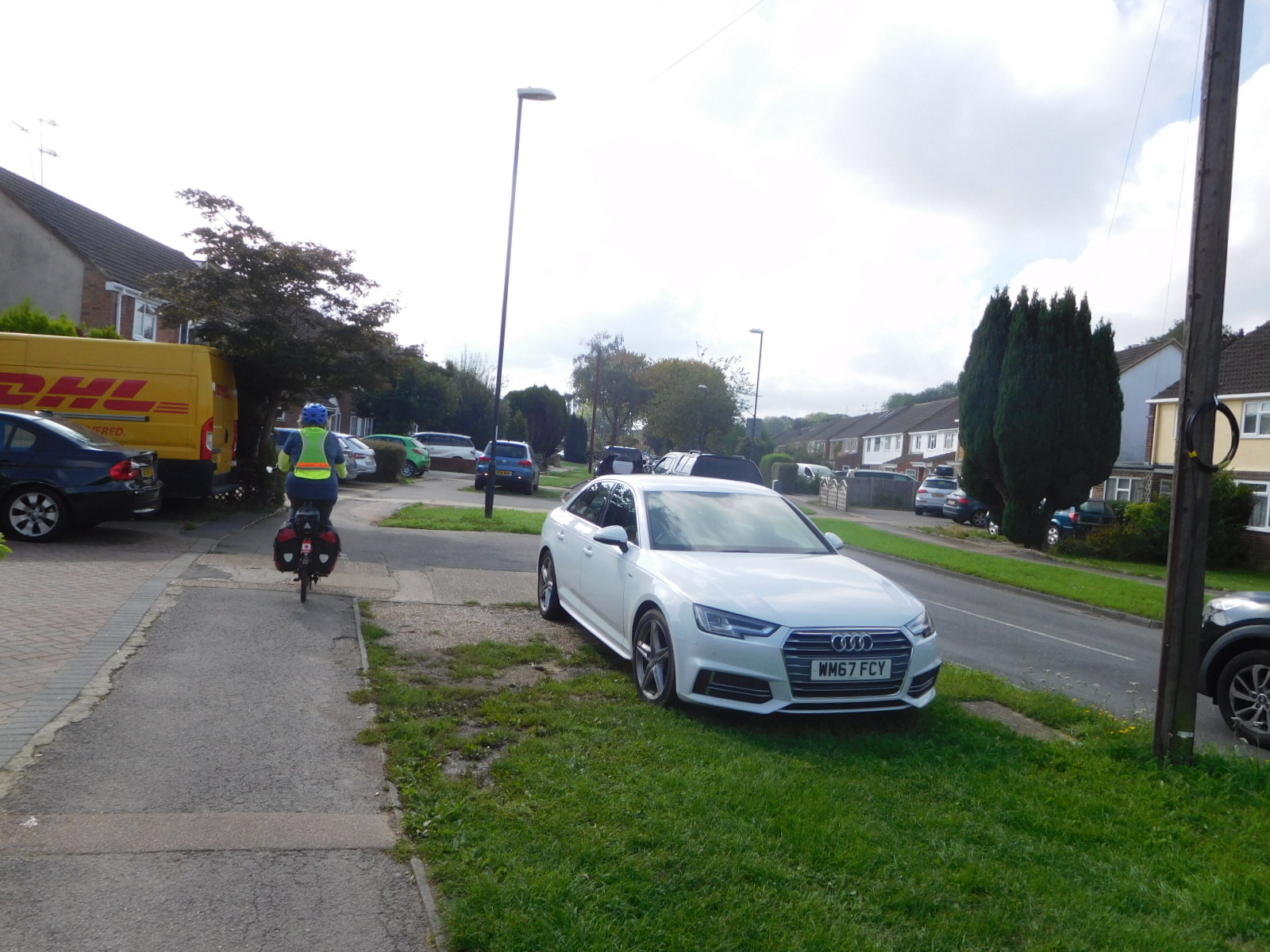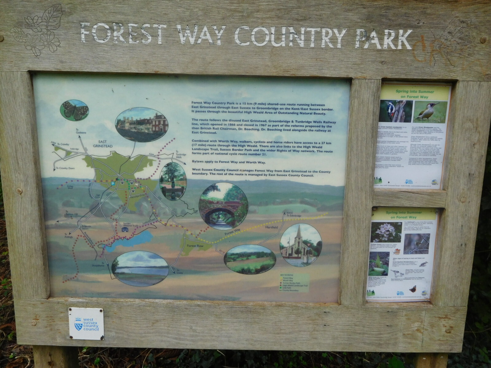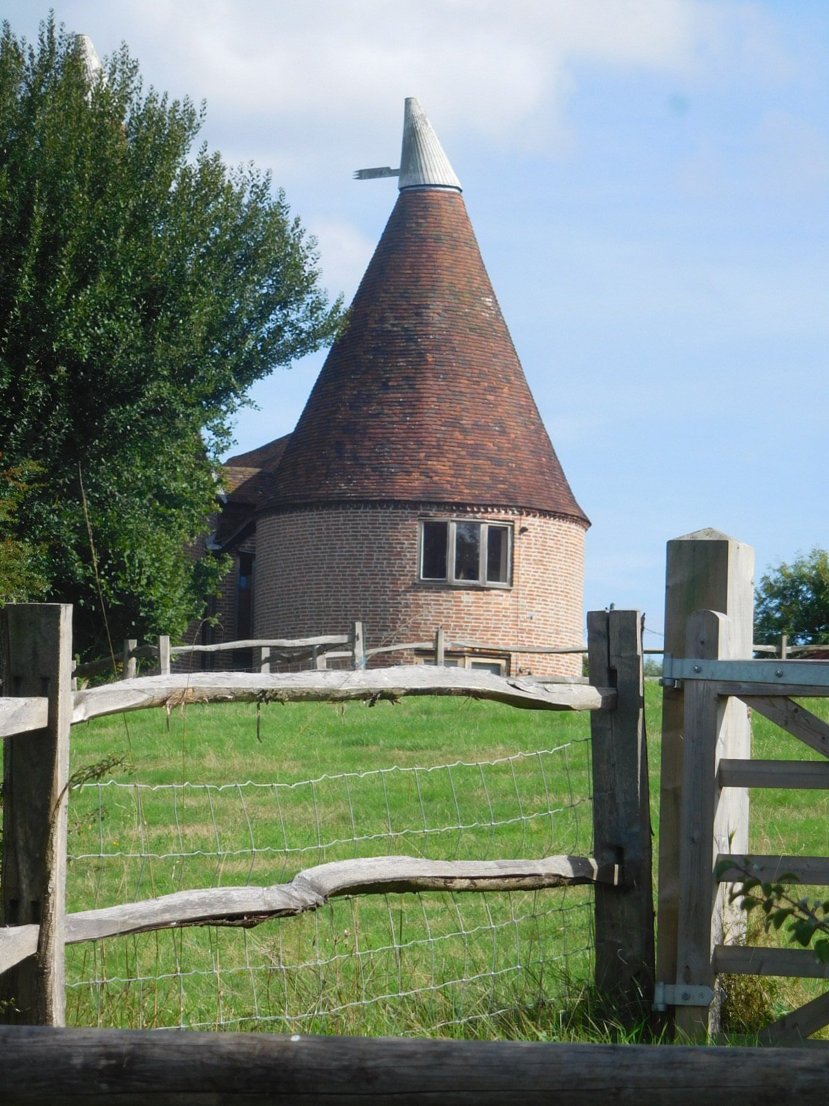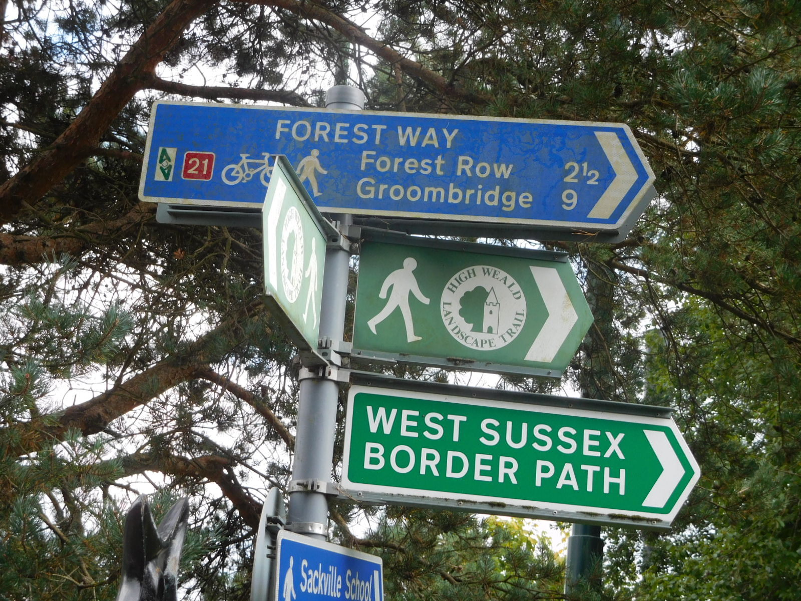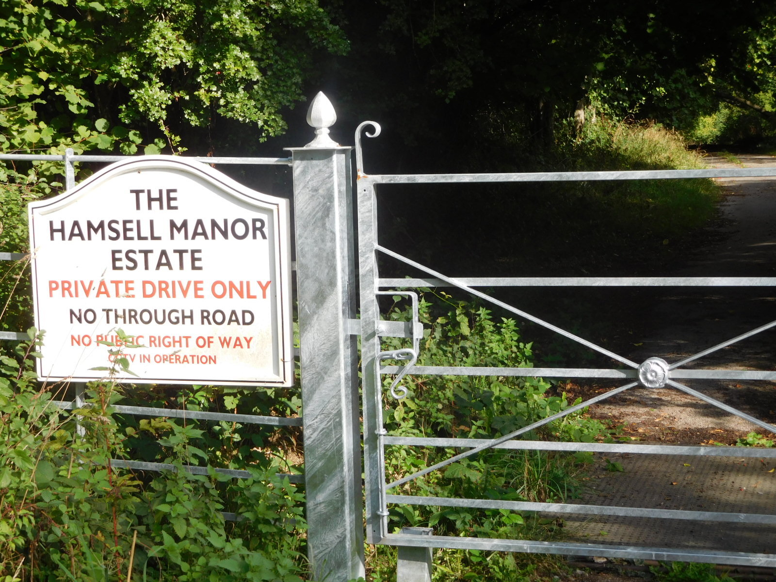 We set off, following the NCN 21, which was to lead through Gatwick, past Crawley, and then take us gaily down into Sussex. Now Gatwick is an airport, and we can not think of any airports that make it easy on bikes. But we wove in and out, back and around, following such signs as there were, and our GPS track, for three hours before emerging near Crawley. From that point it was not clear sailing, not at all. Rather the route continued to twist and turn, left side of road, right side of road, around the roundabout, up the path into the woods, through the hayfield, past the private road gates, etc. etc. I thought about counting just how many changes of direction were part of it, but there were hundreds.