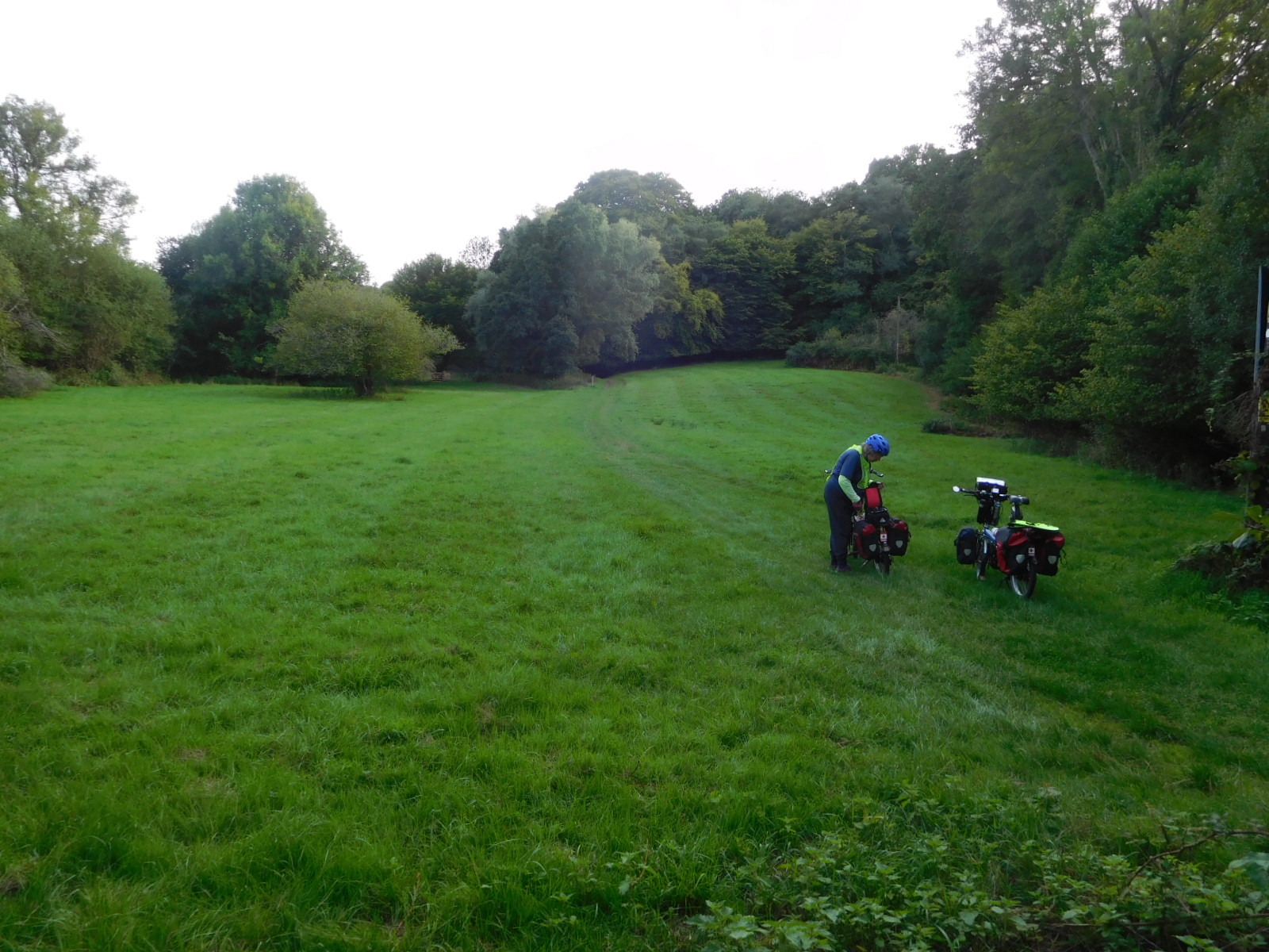For today we had targeted a hotel/pub some 70 or more km from Horley. We had no option but to slog on. In slogging on, we were hoping to run into some easier/faster bits of the route, but no way. In fact the route got tougher. It changed to being nothing but moderate ups and downs, and it took us on single tracks and bridle paths and incredibly right through a gated hay field, to reach a single track by a highway - uphill of course.