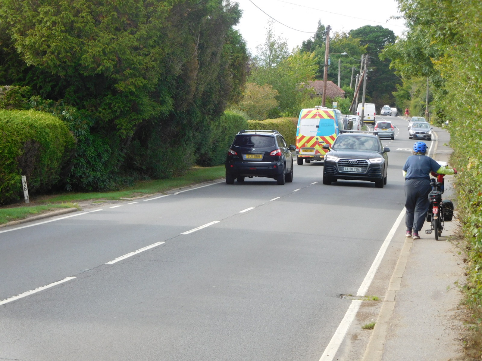 The route put us on some small to very small laneways. This was ok with us, as we felt we were getting to see some real countryside. On a medium-small English road, it is disconcerting because the cars, which should safely be tucked on their "wrong" side, often cross over towards you, when they encounter some obstruction, like a parked car. The narrowness of even a "big" road makes it seem like they are coming for you. But on a ultra narrow road, everyone must go even slower, and edge around a little more carefully.