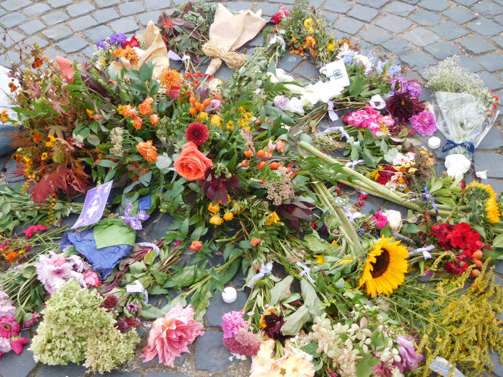 In front of the Abbey was an ad hoc floral Elizabeth II tribute.