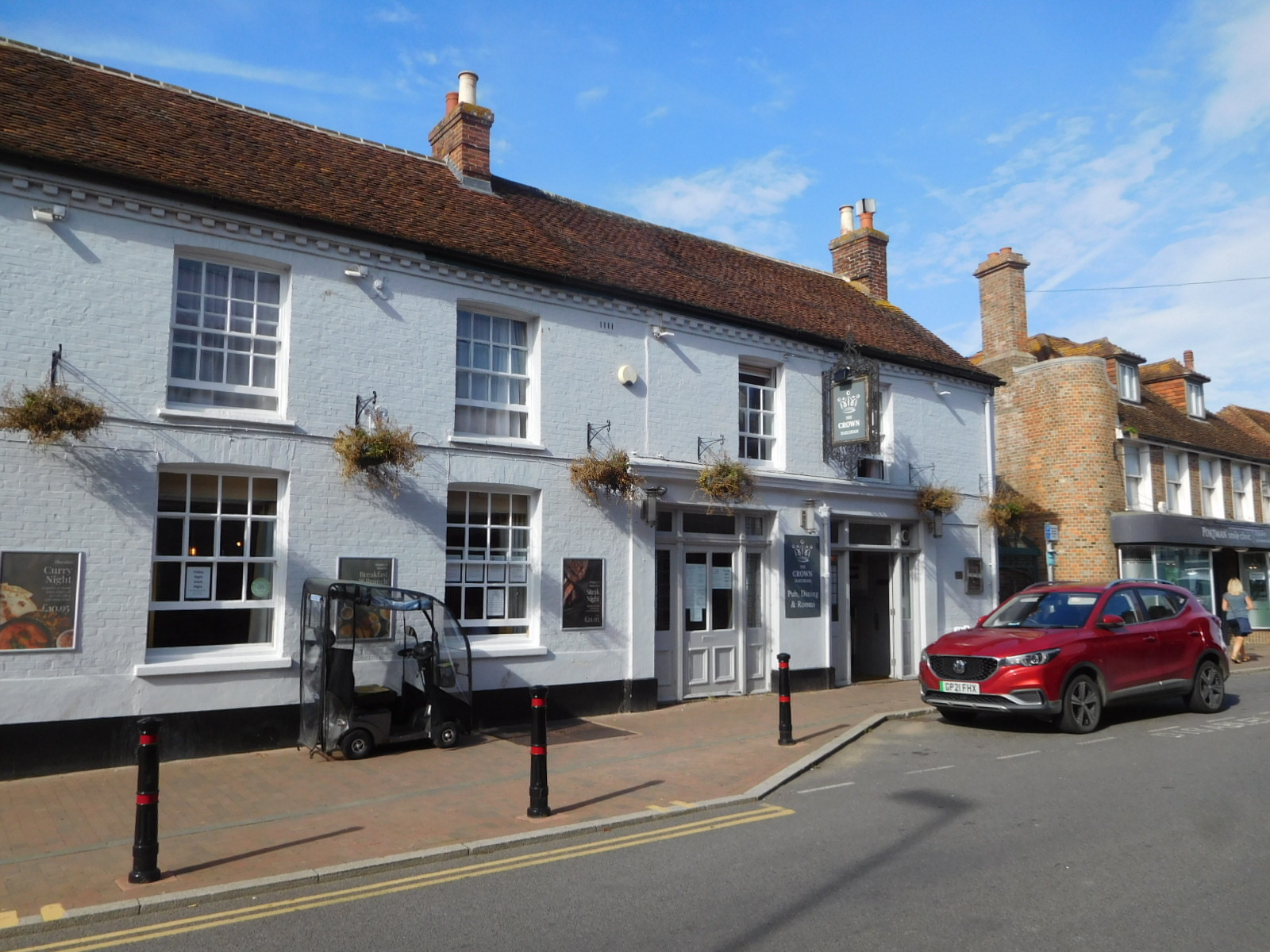 For her part, Dodie was intent on going over to the Crown Pub where we were supposed to have stayed last night, to see about a refund. Our position was that they never answered their phone. Their position was that they tried unsuccessfully to phone us. That was doomed, of course, because the number that Booking has for us is from Canada. So right now, it's a stalemate. Going to the Crown did have the advantage of completing that Cuckoo Trail, and of visiting downtown Hailsham.