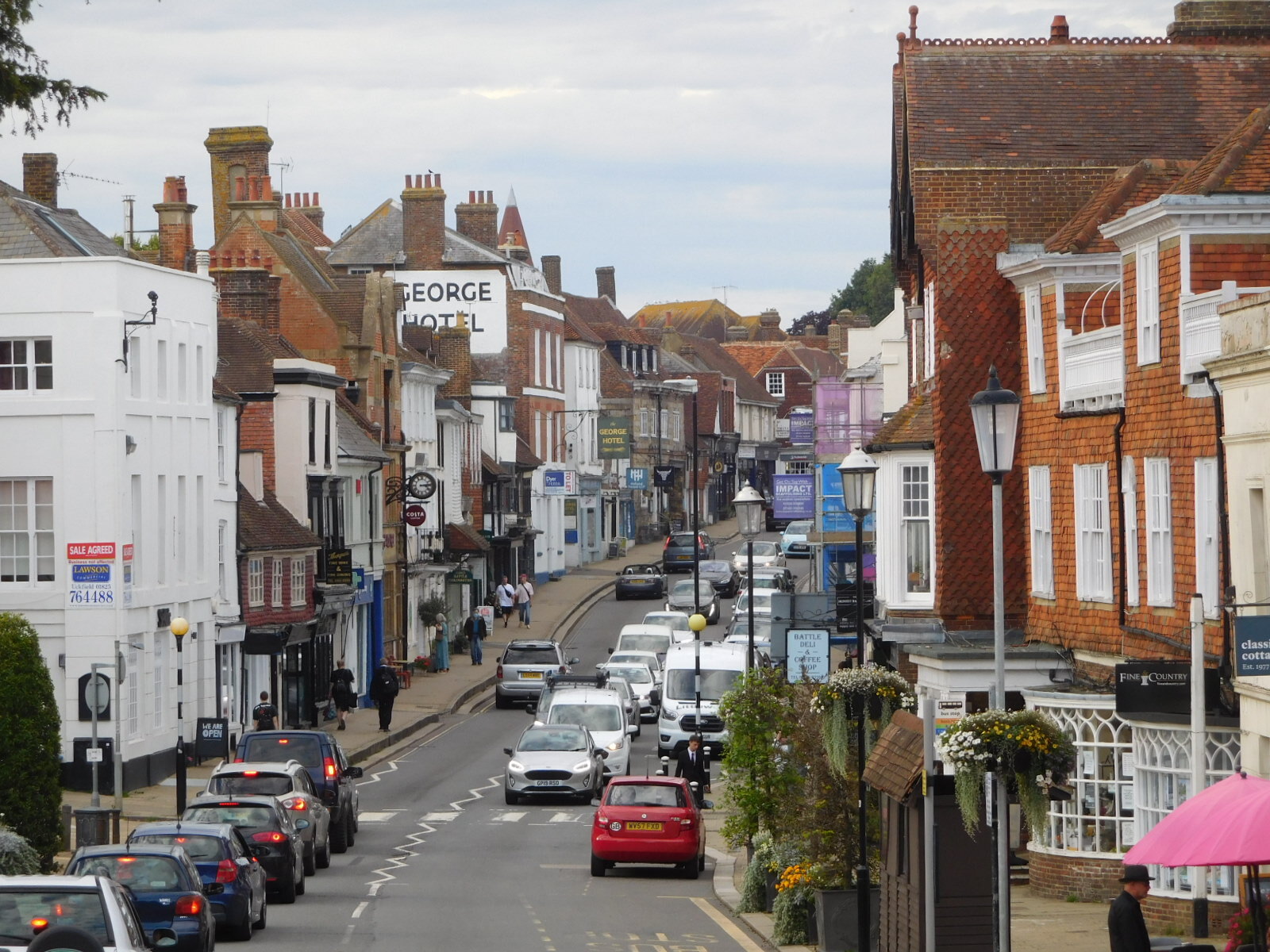 The town of Battle is attractive, in the way of towns here, with old huddled building made of brick and with many chimney pots.
