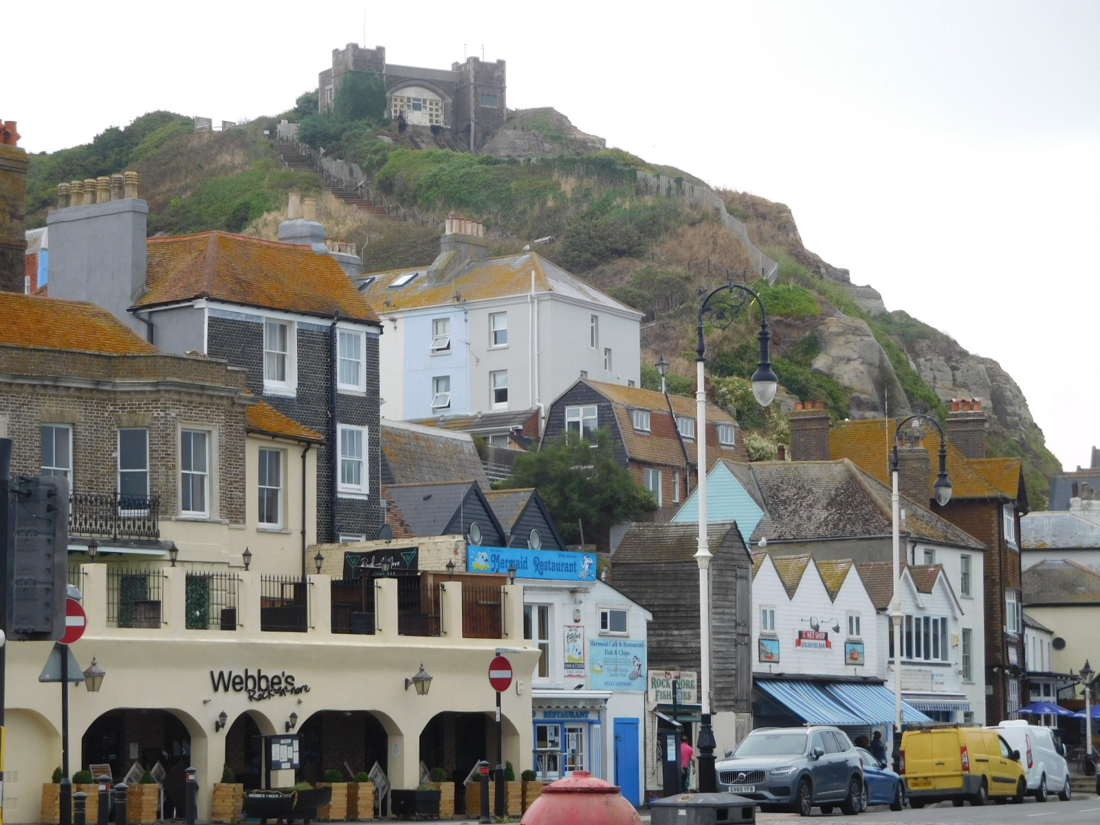There is a small hill at the east end of town, with some attractively jumbled houses around it. This hill however is not the end of hills at the east end. Rather there is a fair climb to get out of the Hastings area.