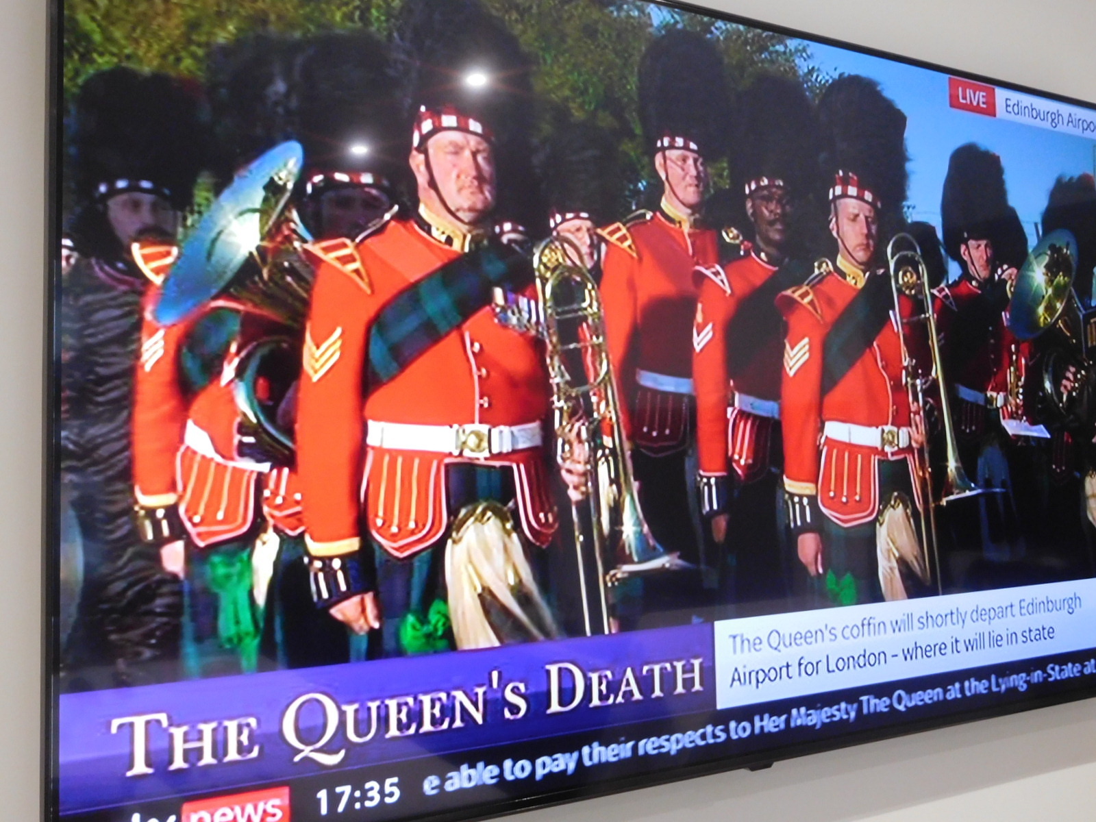 Folkestone is again one of those huddled and picturesque places. Our spot is right in the foreground - the Ship Inn. The former owners have just retired, but continue to run the B&B, in the back. Our top floor spot in the property features two rooms - a bedroom and a sitting room. These are very comfortable, and both rooms feature large screen TV. Normally this is irrelevant, but this week absolutely everybody, including us, is watching the wall to wall Queen coverage. As we came into the B&B, the owners were watching the coffin being loaded onto a plane in Scotland, and they were observing every detail. I think the Queen may have reached Buckingham Palace by now, and tomorrow will transfer to Westminster to lie in state. The TV is saying people will have to queue for 30 hours if they want to file by! Wow, when were at Buckingham last week we thought we had seen the maximum in terms of crowding. But London in the next days is going to be just insane. As we loop around now toward the city, we will have to actually avoid it!