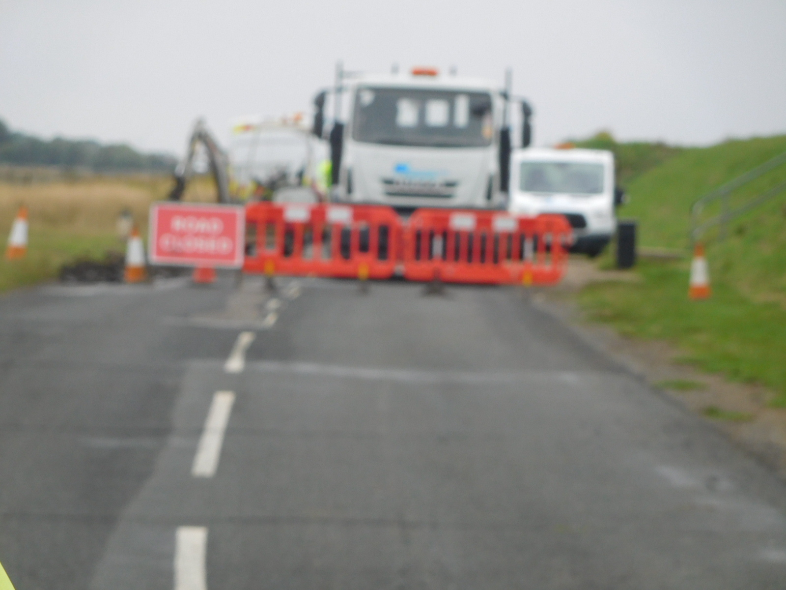 After a few km, we did indeed come upon a crew making a pretty good show of closing the road. But this was mostly show, as they had only really done a little bit of digging on one side. We went through them with no problem, exchanging jocular greetings as we went.