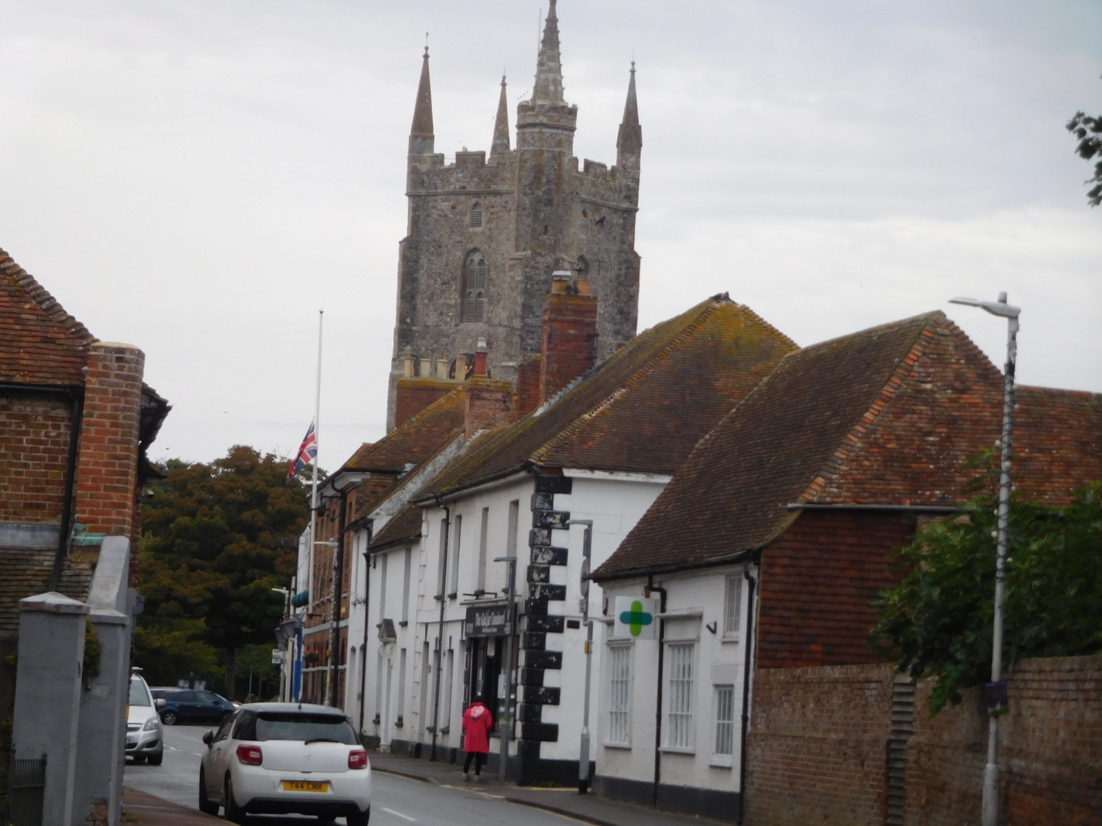 For some time we could see the tower of the church at Lydd. This is sometimes called the Cathedral of the Marsh. For us, it was significant because it was a place where we could eat our lunch out of the rain. It is also one of the longest churches in the country!