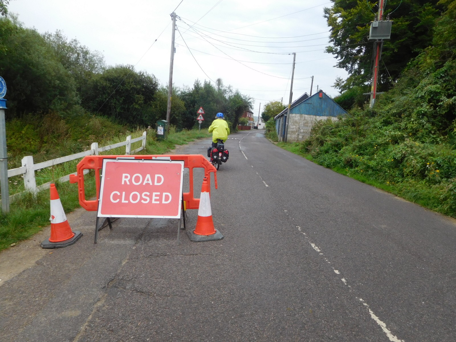 Once back down to the sea, near Petts Level, we could look forward to some flat seaside pedaling. But we immediately ran into a "road closed" sign, and a proposed diversion way out north and west. Of course, as usual, we ignored this, preferring to have whoever was closing the road prove that it was really impassable.