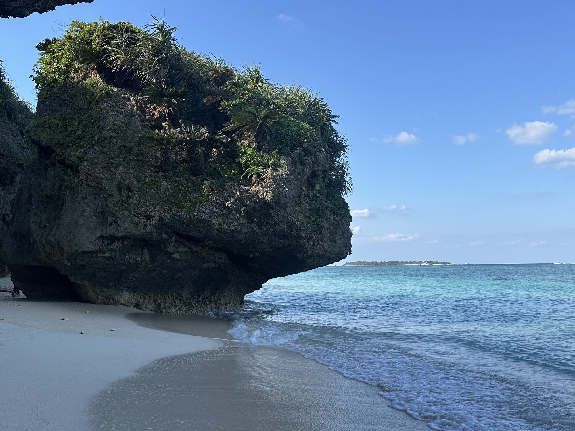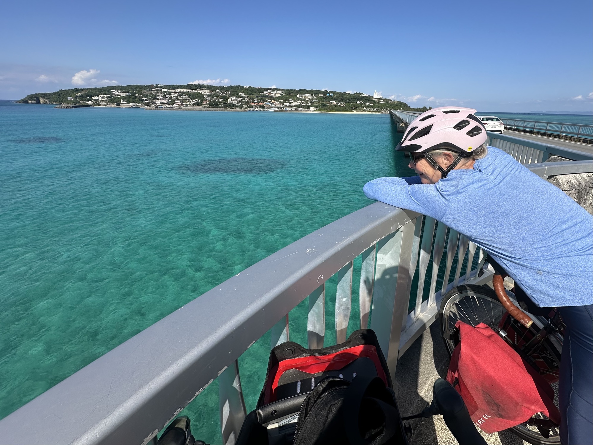 After our allotted breakfast (yogurt and toast, no buffet, this was a guesthouse after all), we bade goodbye to the ebullient owner of the guesthouse, who took a bunch of photos of us and our bikes for the guesthouse social media, then we pootled off slowly along the sunny, quiet lanes of Sesoko Island, towards the beach at the western end.