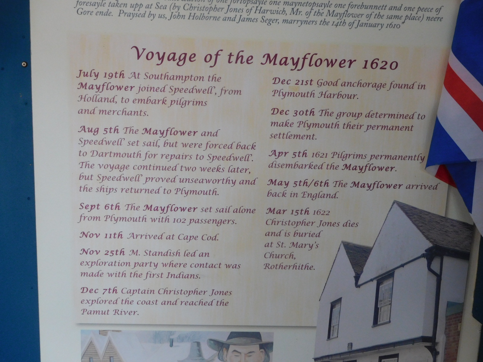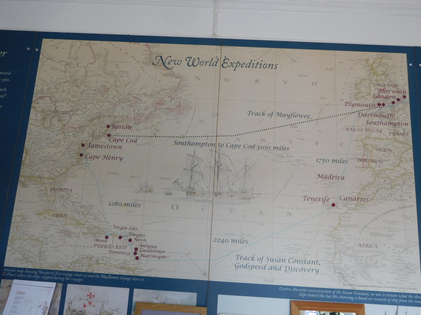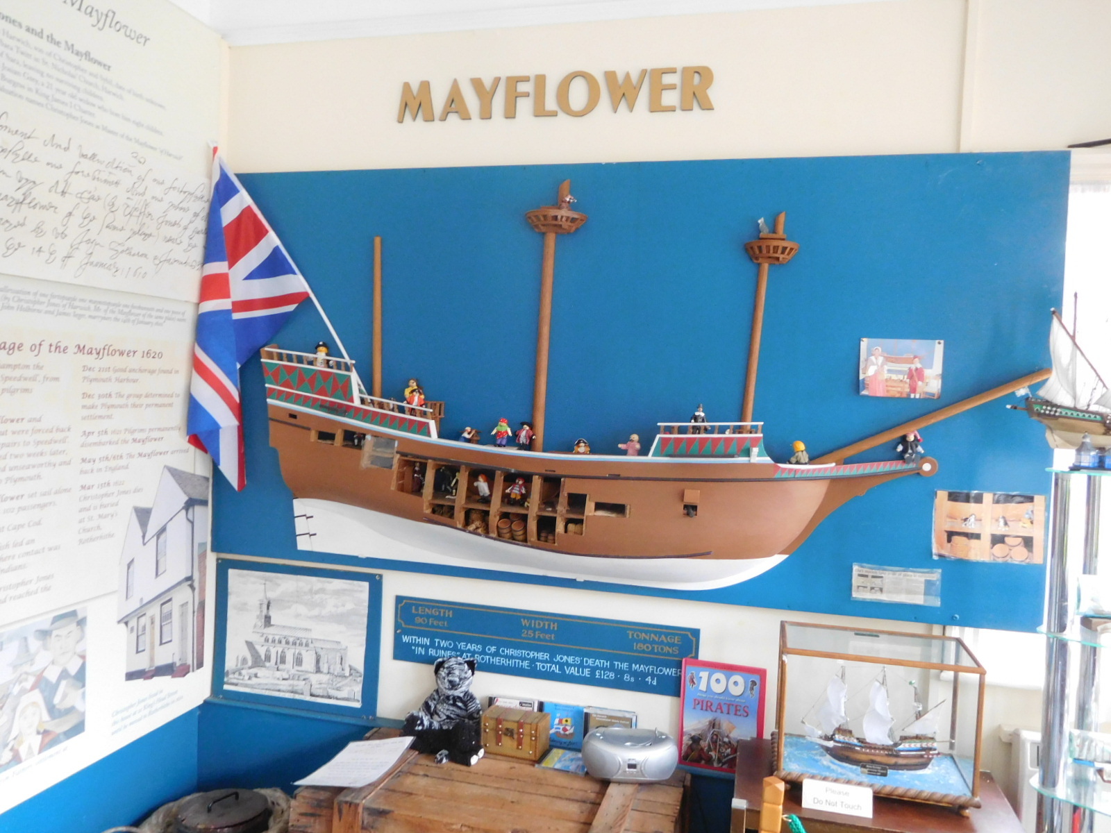I stopped in to the ticket office, that also had the Mayflower display, and asked what the link was of Harwich to the Mayflower. It turns out the boat was built near here, and also the captain and crew were from here. The Mayflower started its journey from Southampton, where it had a rendez-vous with the Speedwell, which had brought passengers (pilgrims) from Holland (Leiden). Both ships set out for America, but the Speedwell developed a leak, and both had to return. Mayflower took on some Speedwell passengers and set off alone. The delay ran Mayflower into bad weather and it was damaged at sea. Somewhat repaired, it limped to Plymouth, and as they say, the rest is history.