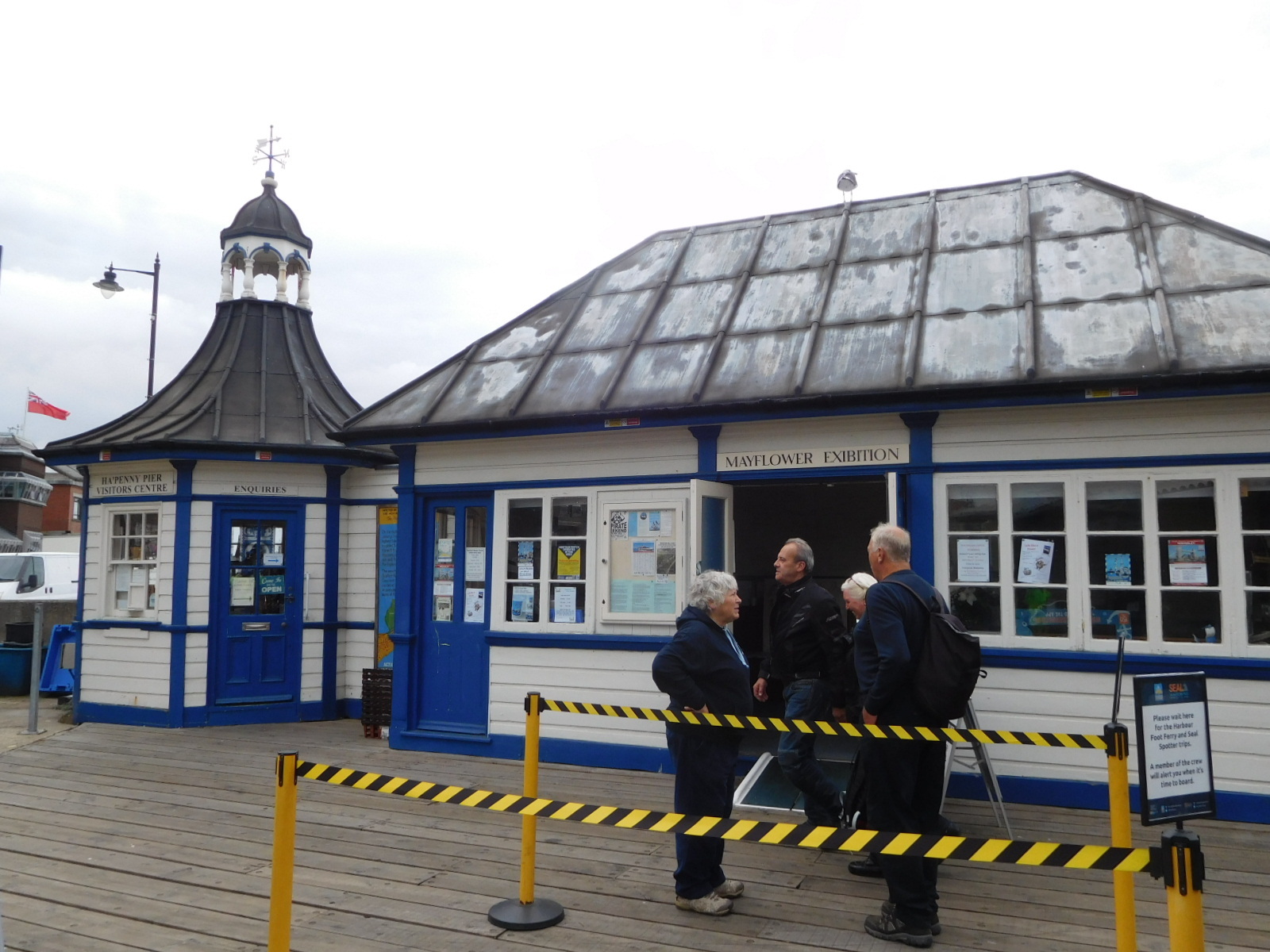 To continue our journey, we need to cross over to Felixstowe, and then to proceed to Ipswich, and soon to Cambridge. The crossing is done on a little passenger ferry. We somehow only planned to get on the ferry tomorrow, but we still pedaled over to see what it is all about. The ferry leaves from a pier that has been there since the 1890's, and is called HaPenny Pier. At the pier there is a little restaurant, and a ticket office with a small display about the Mayflower.