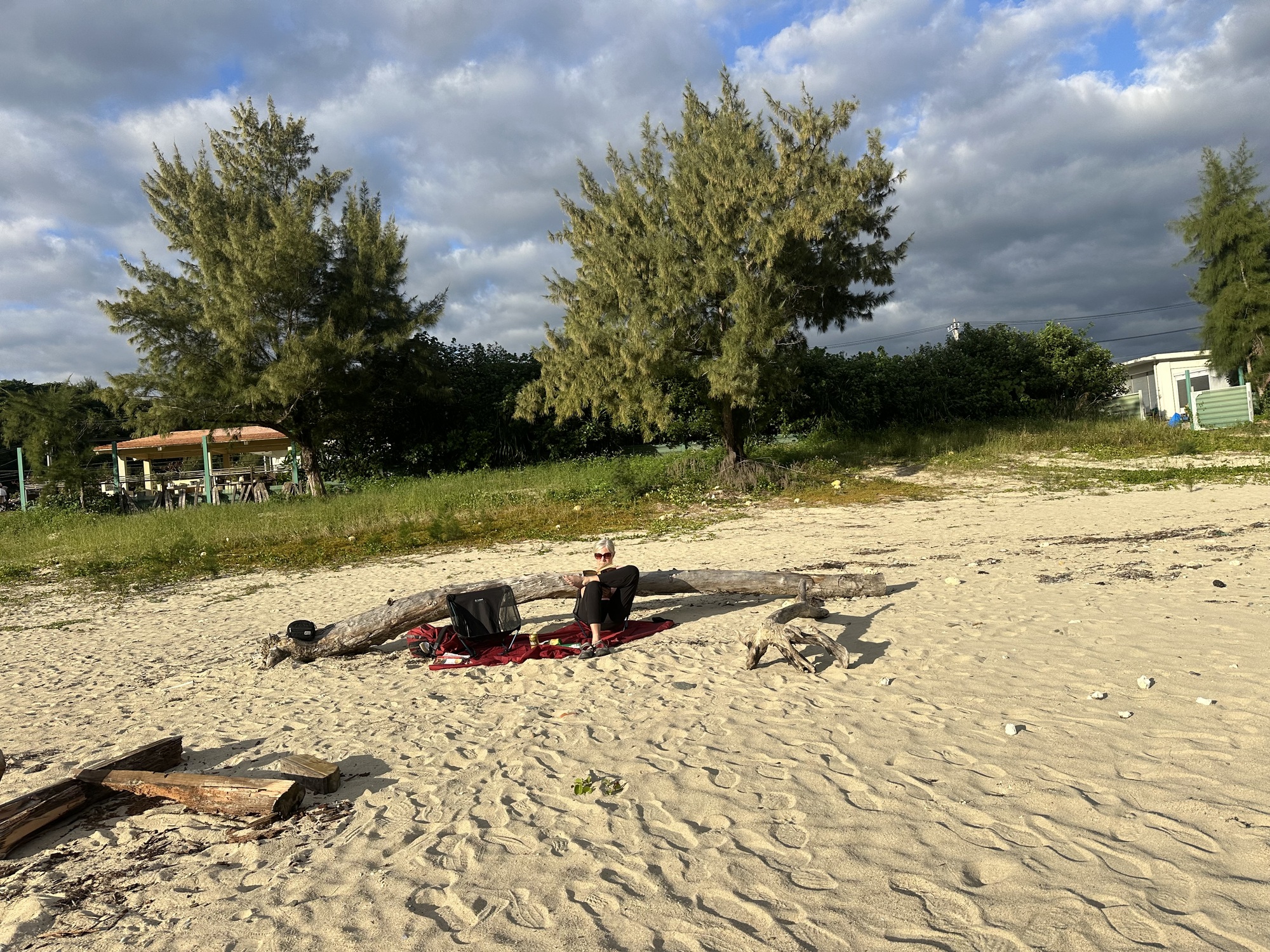 We spent a peaceful afternoon reading on the beach. The only other beachgoers were four young western men, clearly American soldiers from one of the nearby US bases (clues: very short hair, not tanned, looked like they worked out all the time). (Tom interjecting: I was put in mind of names from Mystery science Theatre’s Space Mutiny episode: Buff Mclargehuge, Buck Plankchest, Slate Slabrock, Hack Blowfist, etc) One of them sat bolt upright on the beach for the entire afternoon, motionless and staring out to sea, while the other three lay sprawled on their towels looking at their phones and napping. I began to wonder if maybe the American military was developing androids and the three soldiers had been asked to take one of the units out for the afternoon and test how well it functioned in a sandy environment.