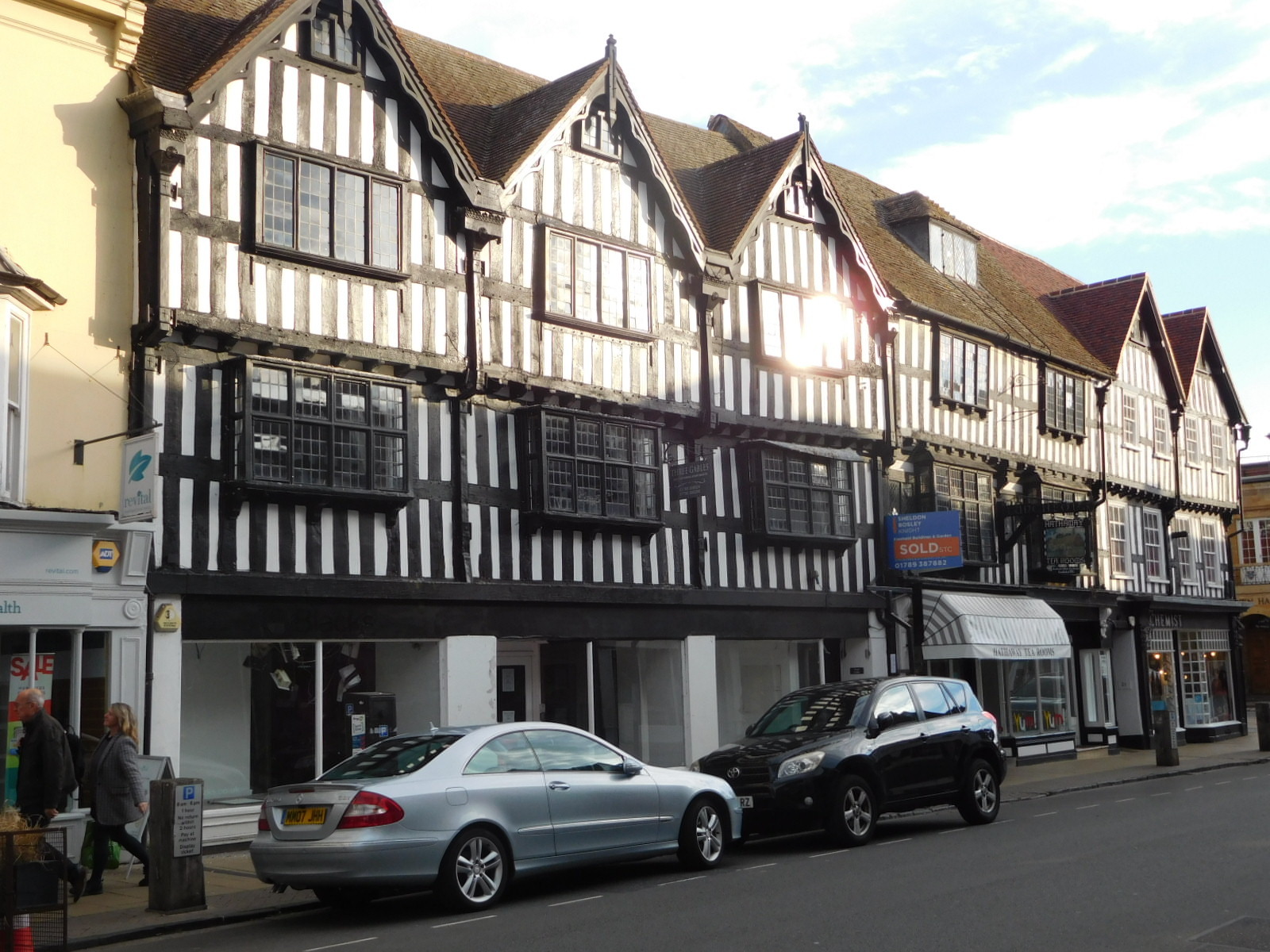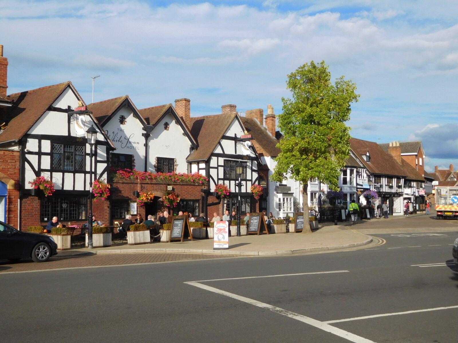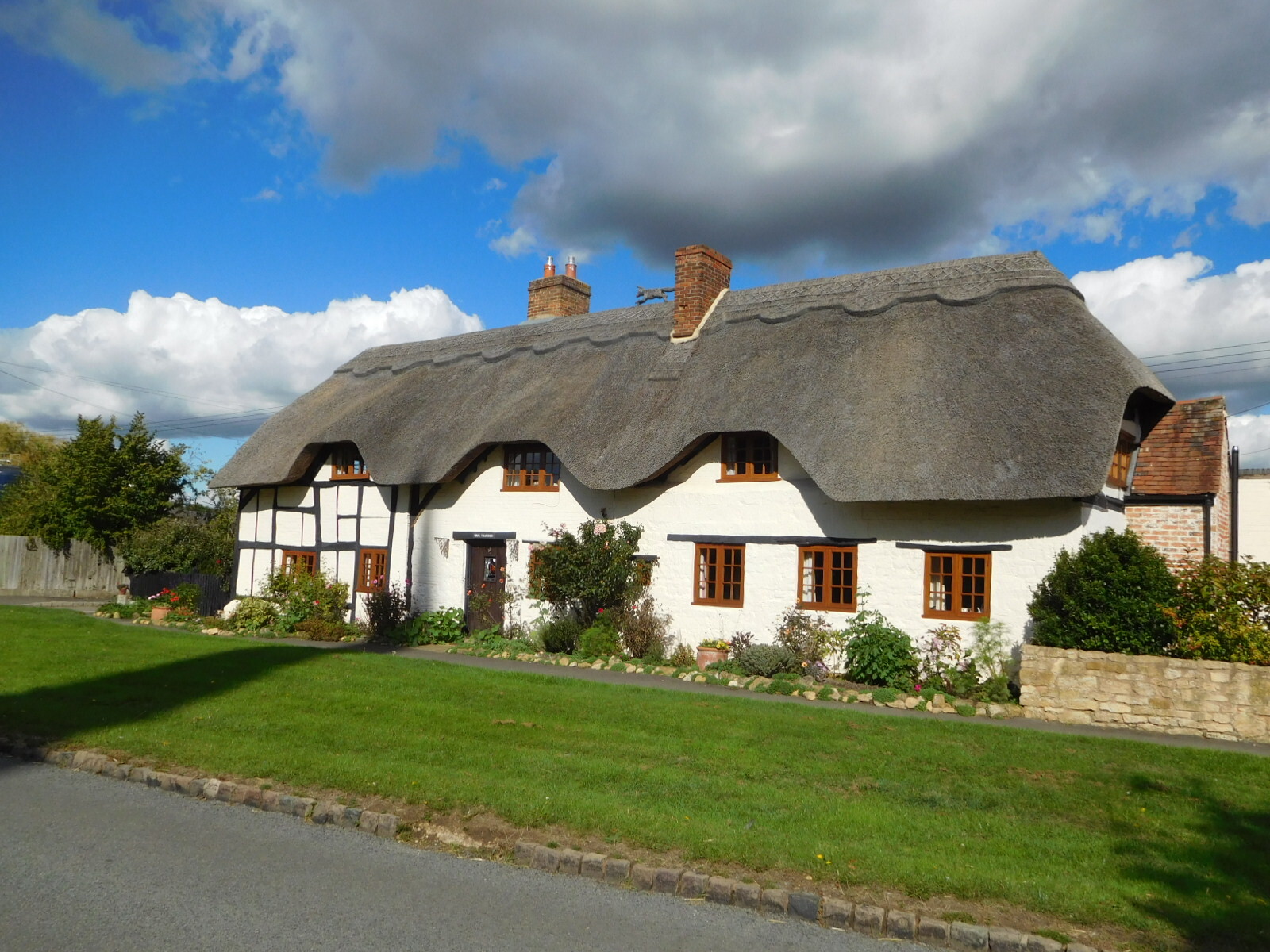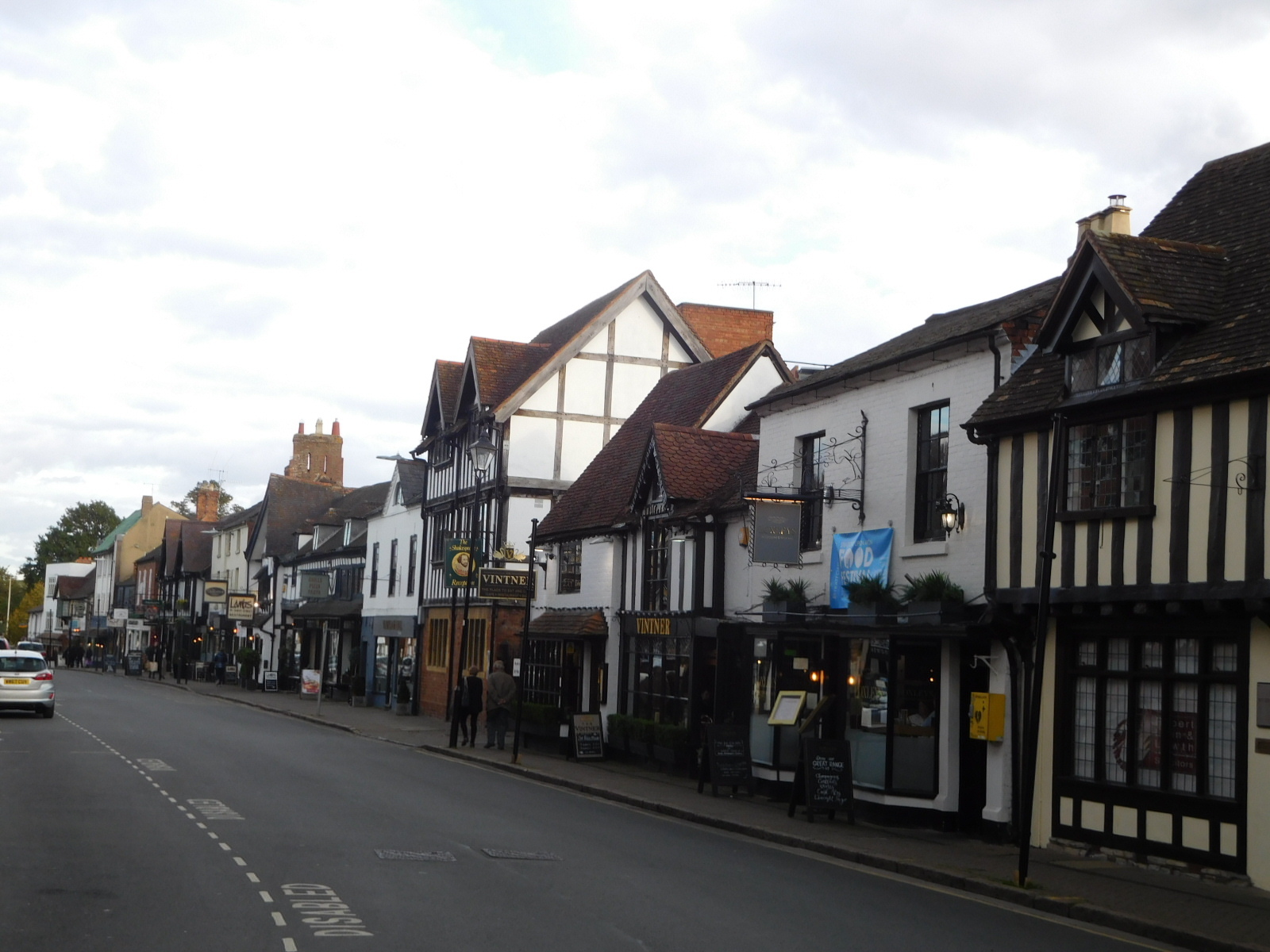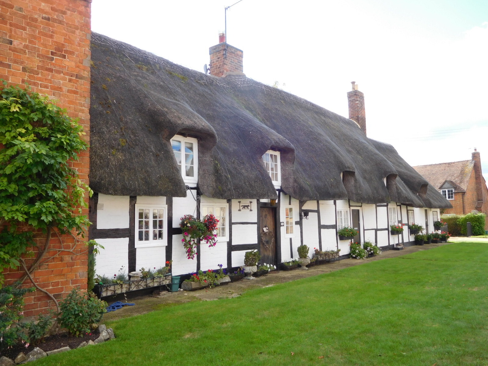 As we began to approach Stratford Upon Avon, to some extent the stone buildings gave way to fachwerk, stucco, and thatch. Here are two great examples of that style: