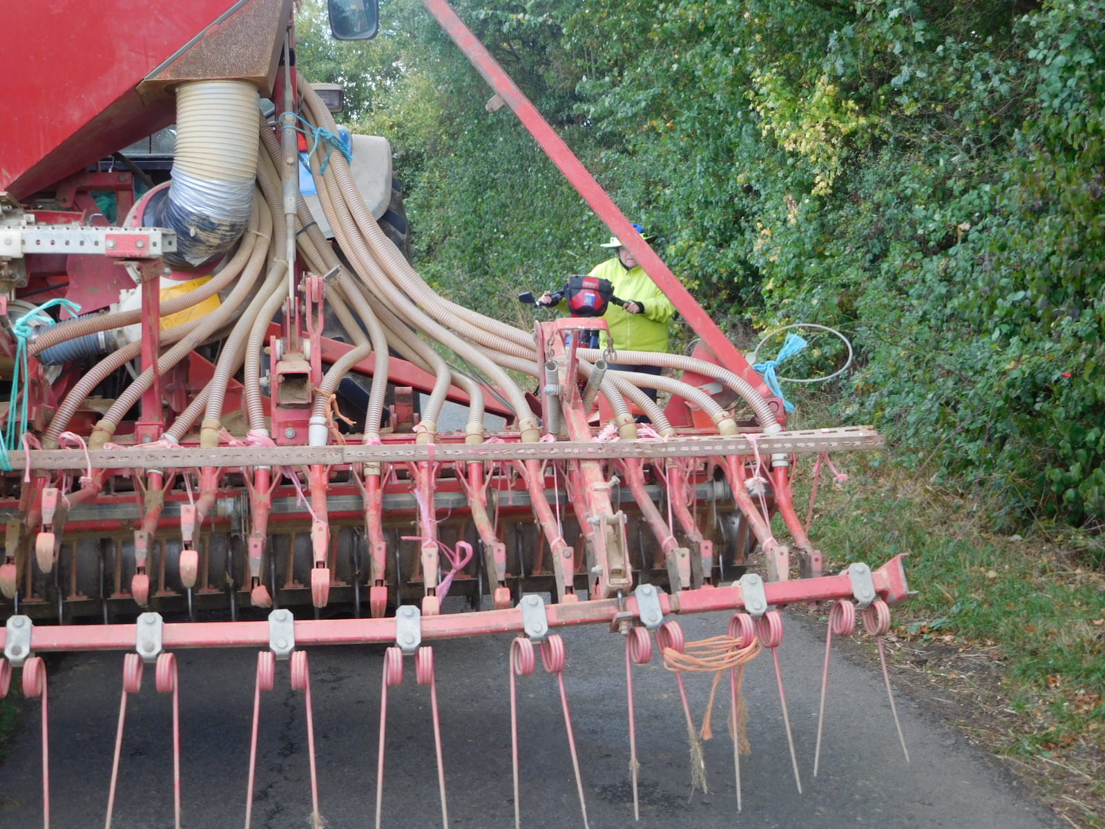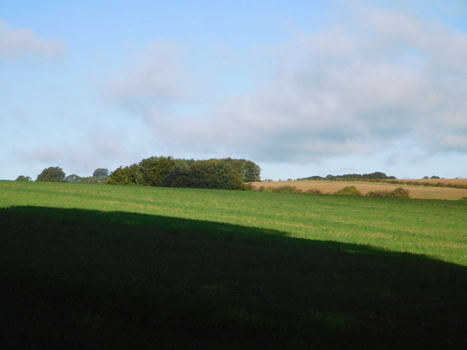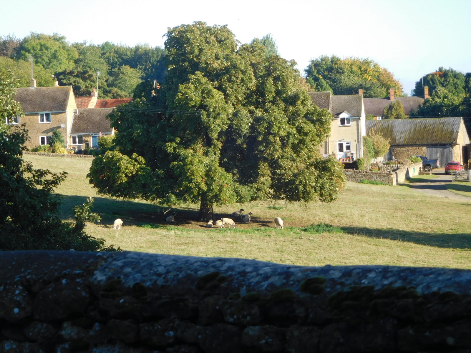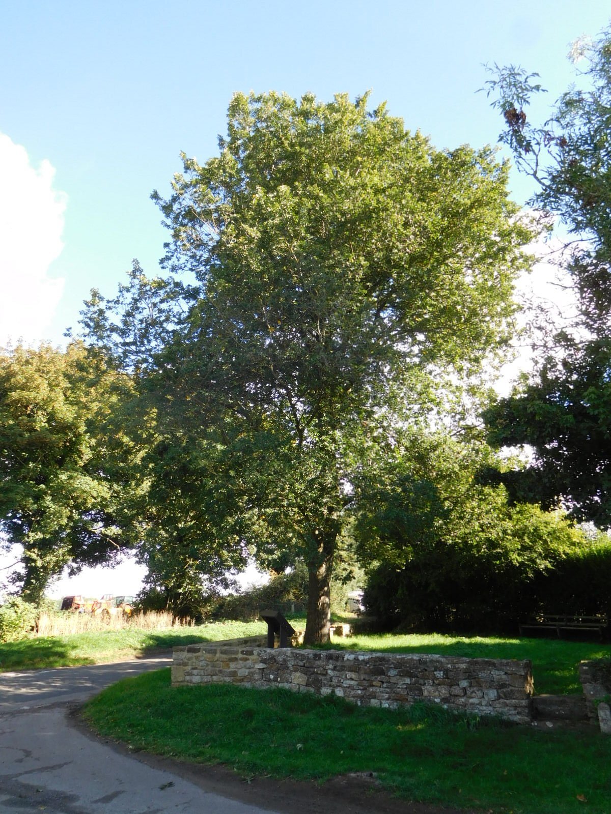 A minor but interesting event in the day came as we stopped for a break at a crossroads. A sign board there said that there has been an elm tree at this corner for centuries, supported by a local private school. Trees on the corner have fallen victim to lightening and to Dutch elm disease, but they are proud that the current one is doing well. Here it is: