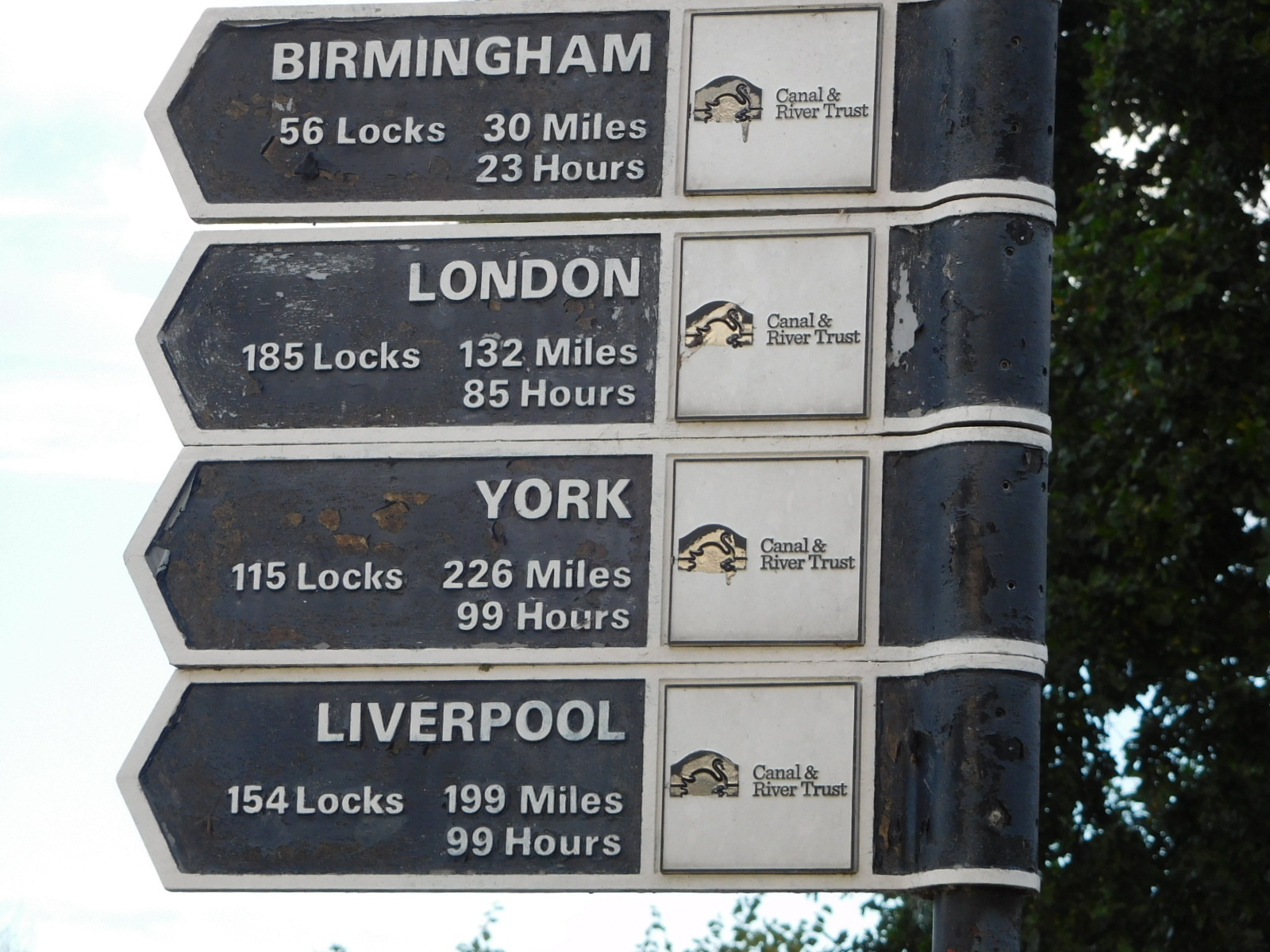 The canal was interesting for a sign detailing how long it would take to get anywhere on it. You need to pass 185 locks to get to London!