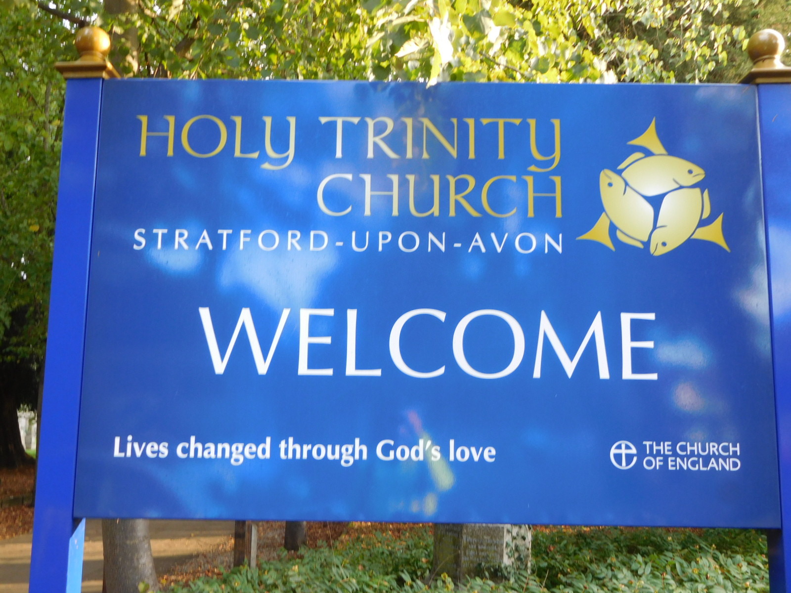 We continued along the river to the church. Once again, there was no signage, and we certainly could not examine all the weather worn headstones! I whipped out my phone and discovered that there is a Shakespeare memorial inside. But not only was the church closed, a sign on the door gave opening times of just a few hours per week!