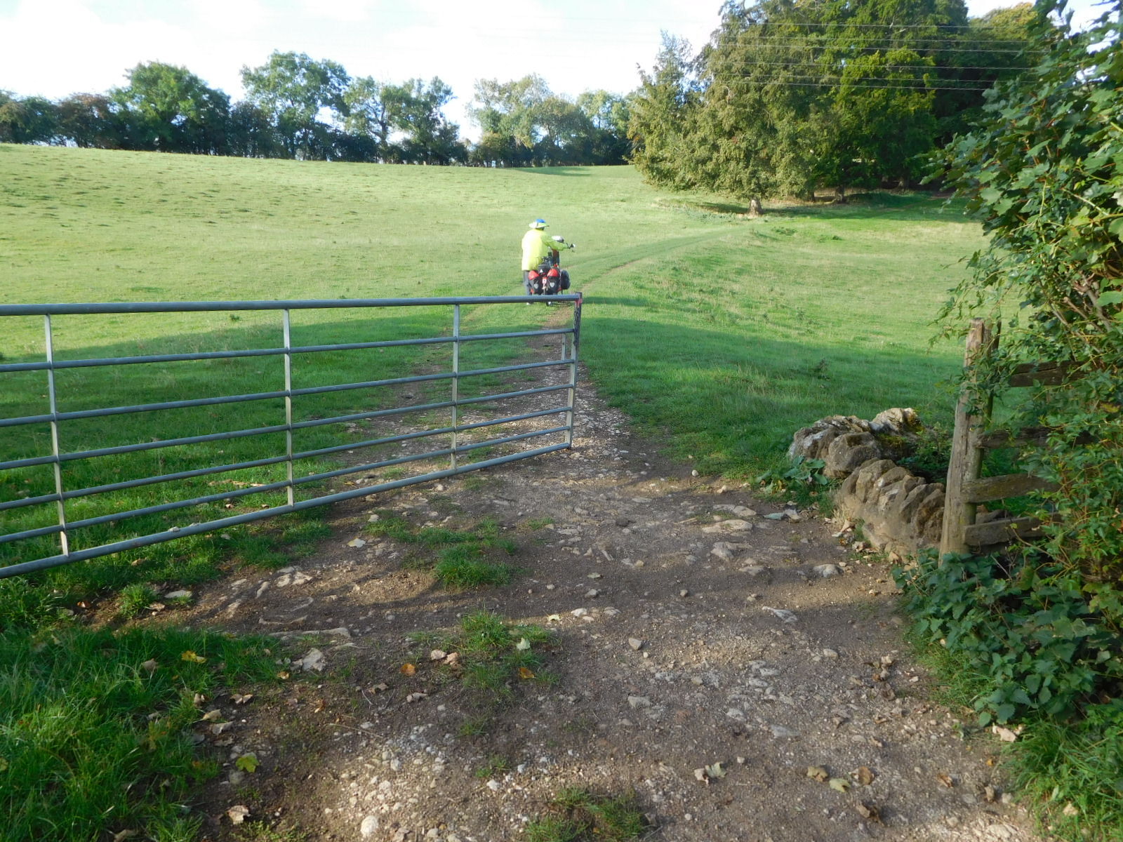 Just as we were feeling sort of good about the laneways and vistas, NCN 5 came up with a series of gates and meadows for us. We had to push for quite some time, and Dodie began to scan the GPS for some actual roads to ride on. I am reluctant to "bushwack" on road, because an innocent looking road on the map here can turn out to be nerve wracking. Dodie considered just not telling me when we were on some ad hoc road, or on the NCN. Largely, though, we did stick to NCN, and it was OK.