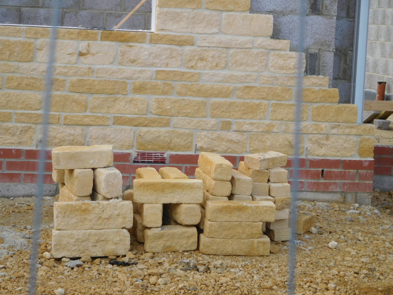 We came upon one of the craftsmen, on the job. Dodie and I had debated whether the common building material was "brick" or "stone", and we had decided to call it "fieldstone". But I asked the craftsman and learned that this is quarried stone that comes out in huge blocks. It is then sawn into "bricks" with four smooth edges to facilitate stacking. The stone here is known as "iron stone" for its iron content and brown/yellow colour. Further north, we were told, the colour becomes more whiteish.