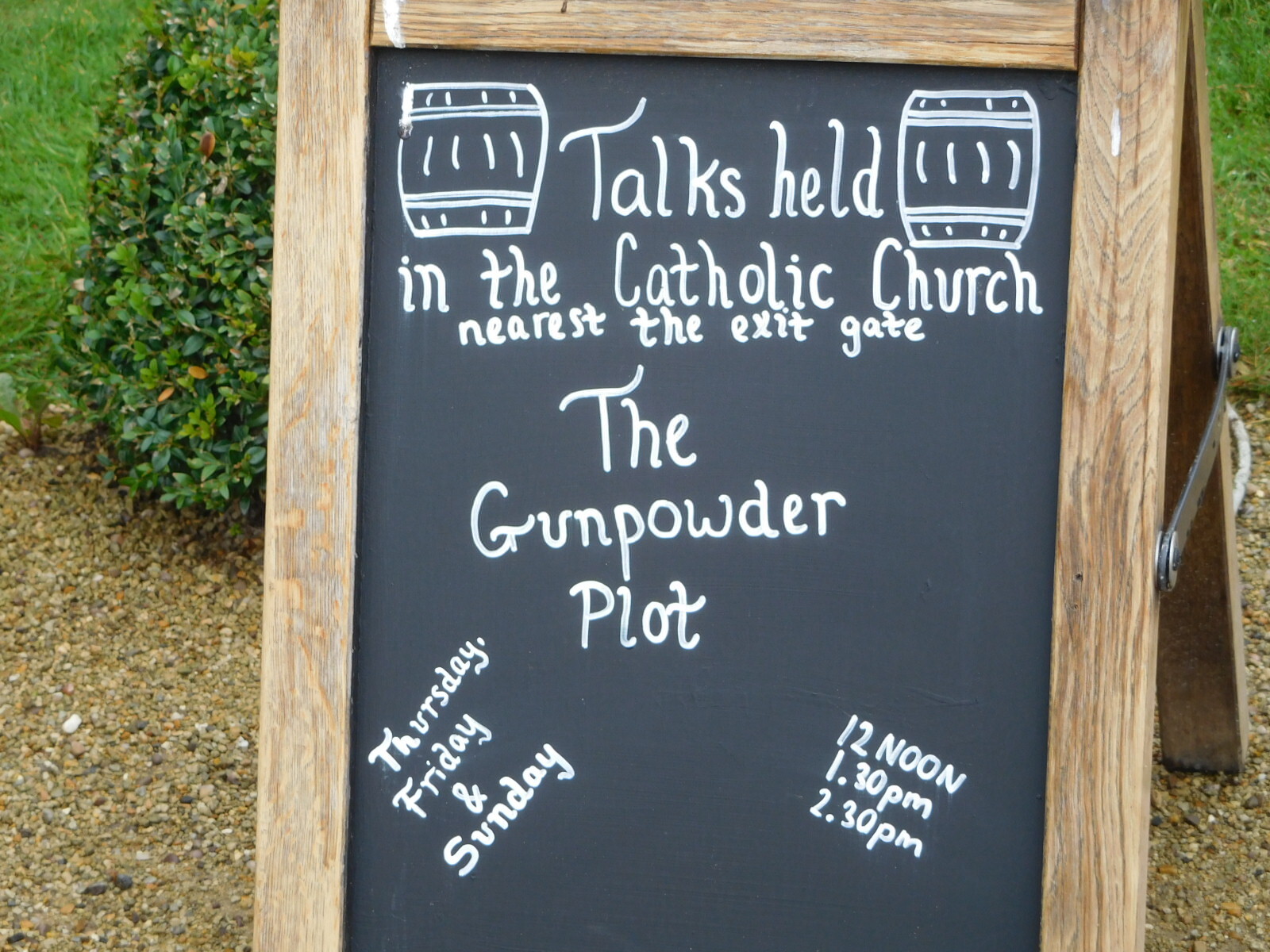 Outside the house was a sign, mentioning a talk about "The Gunpowder Plot".